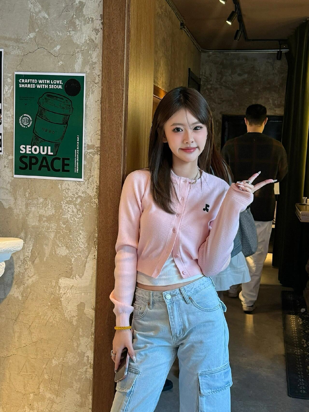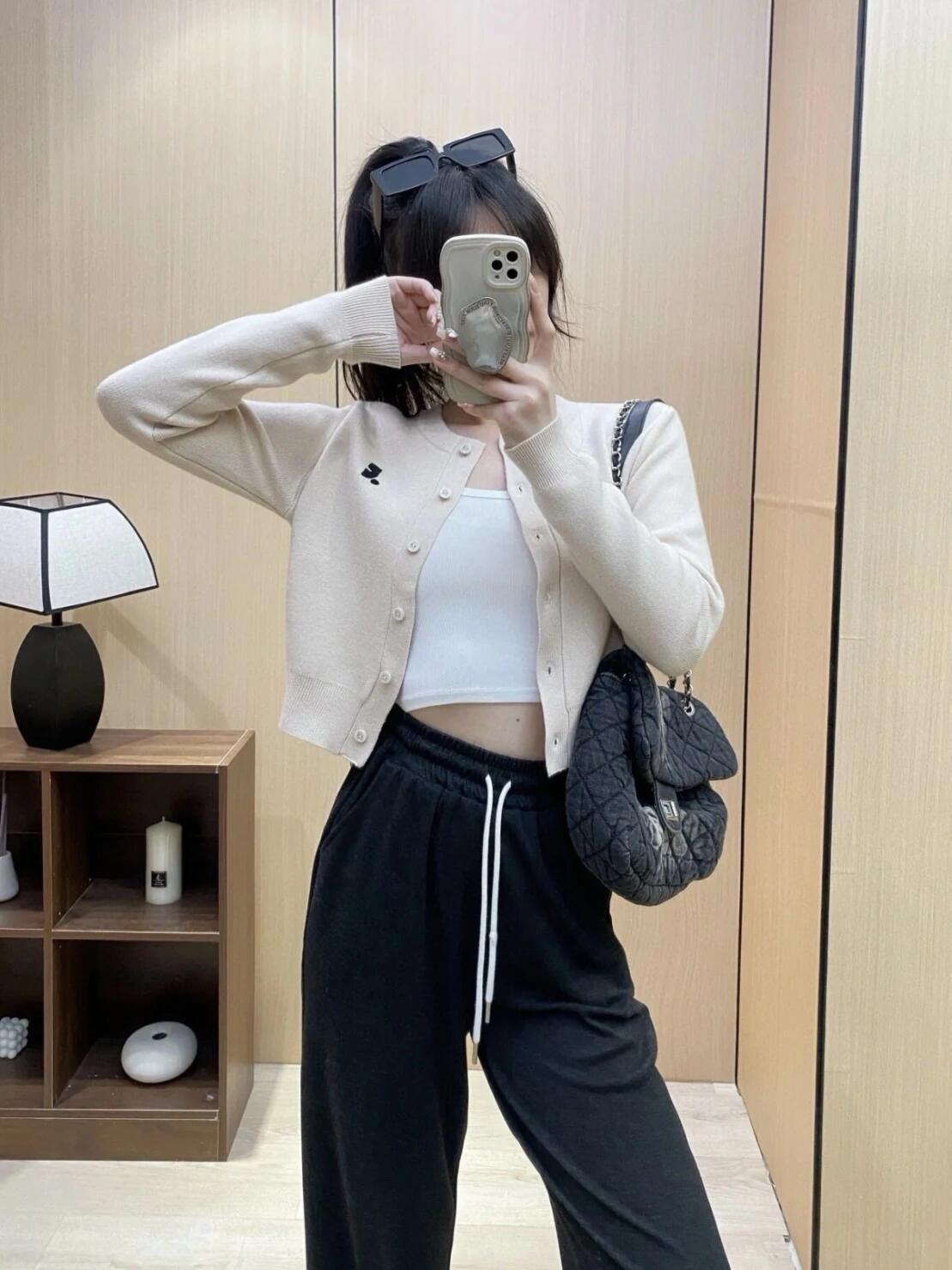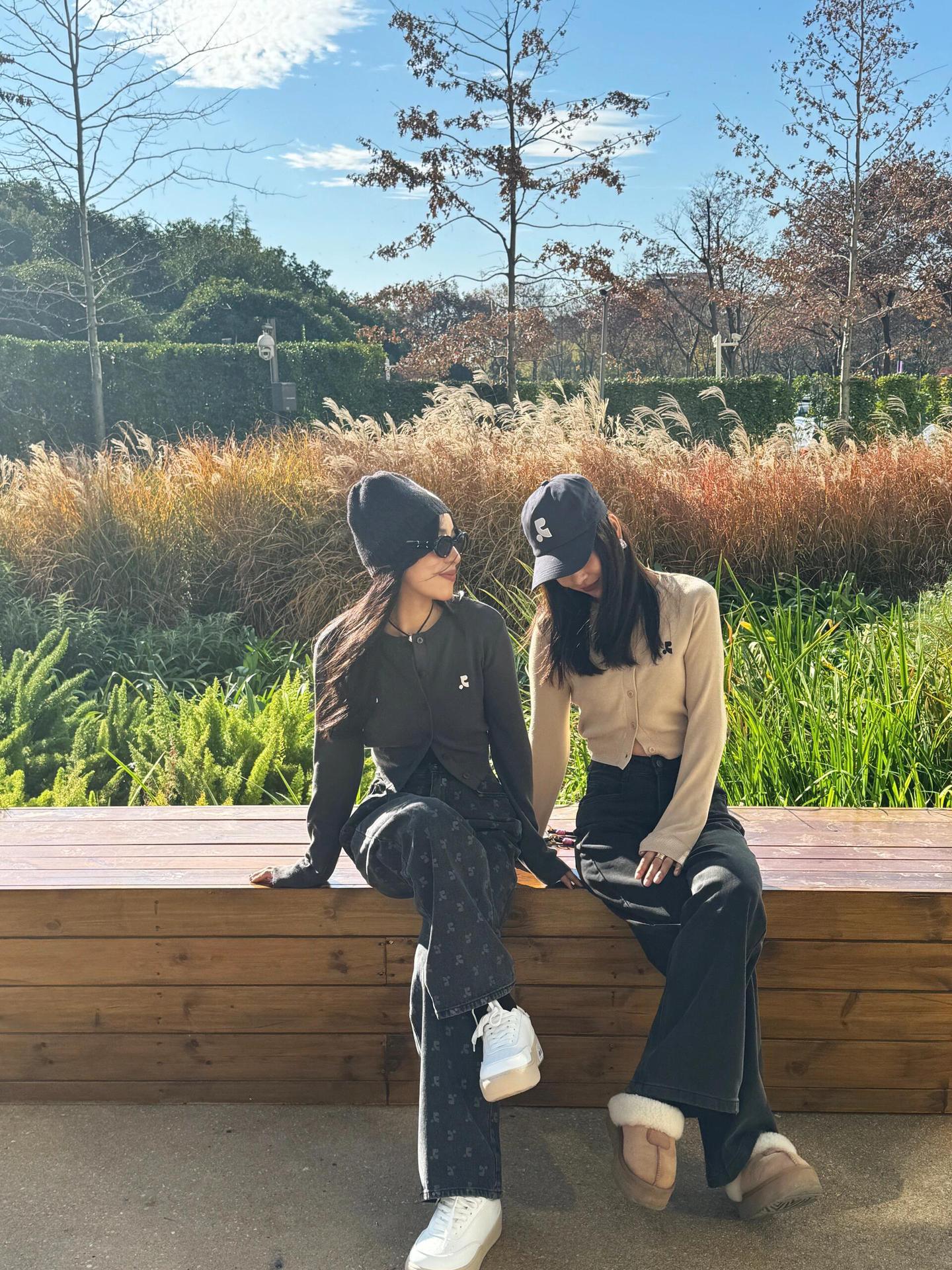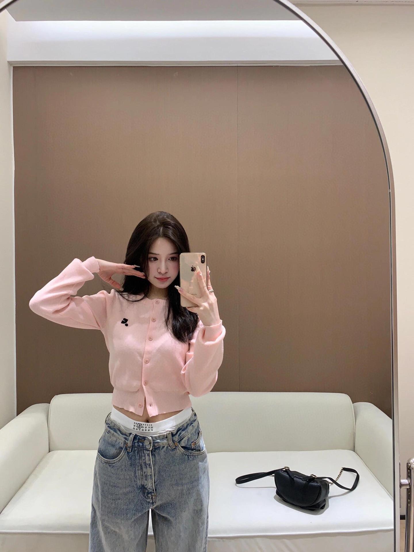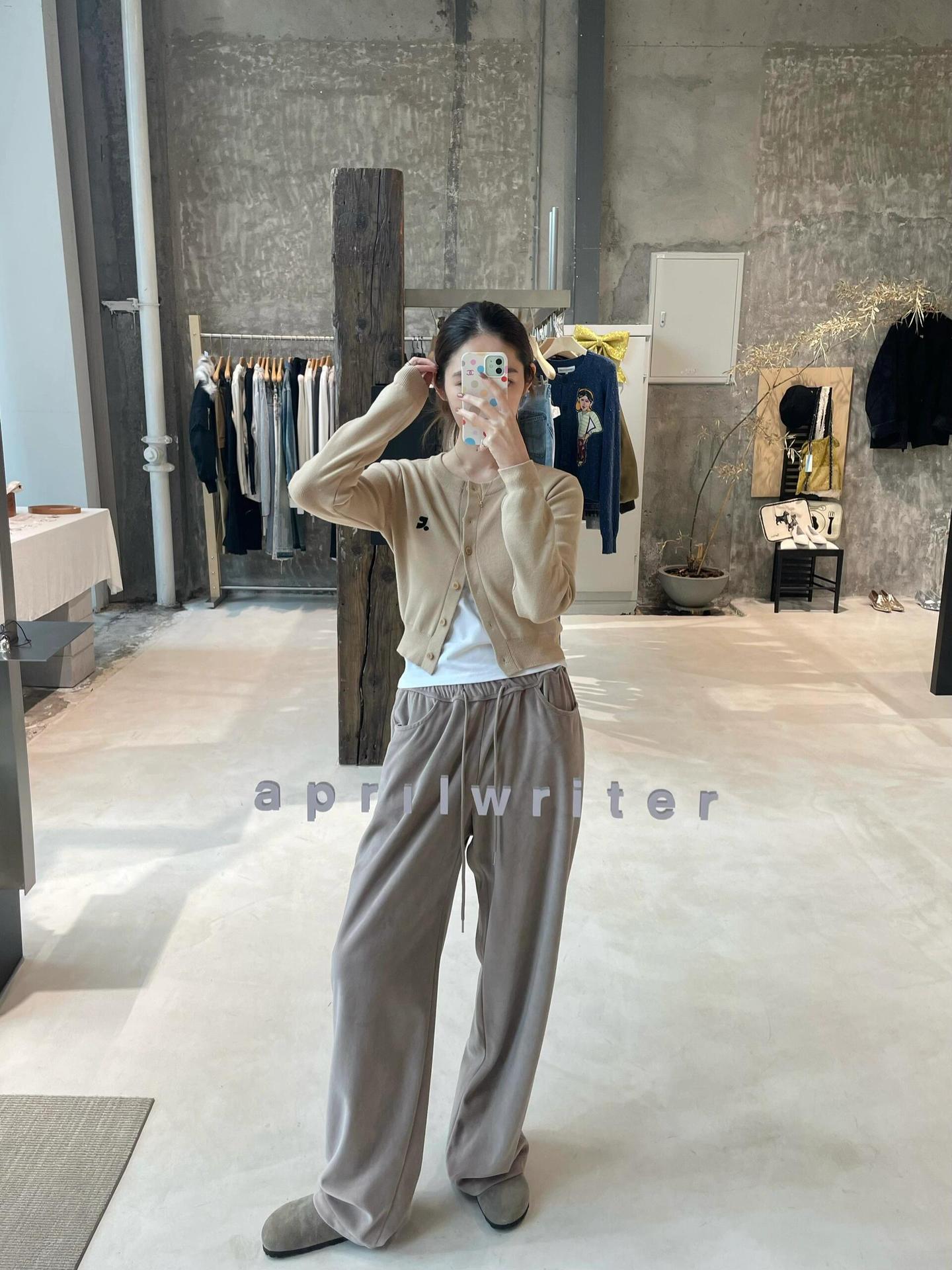 한국 트렌디 브랜드 restandrecreation 짧은 슬림 니트 스웨터 RR 자수 카디건 스웨터 재킷 여성용스토어 가기