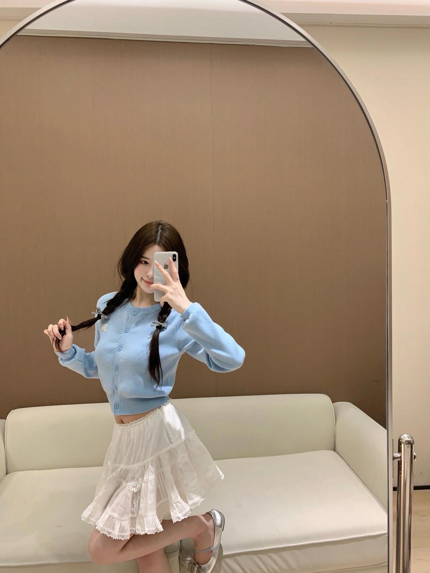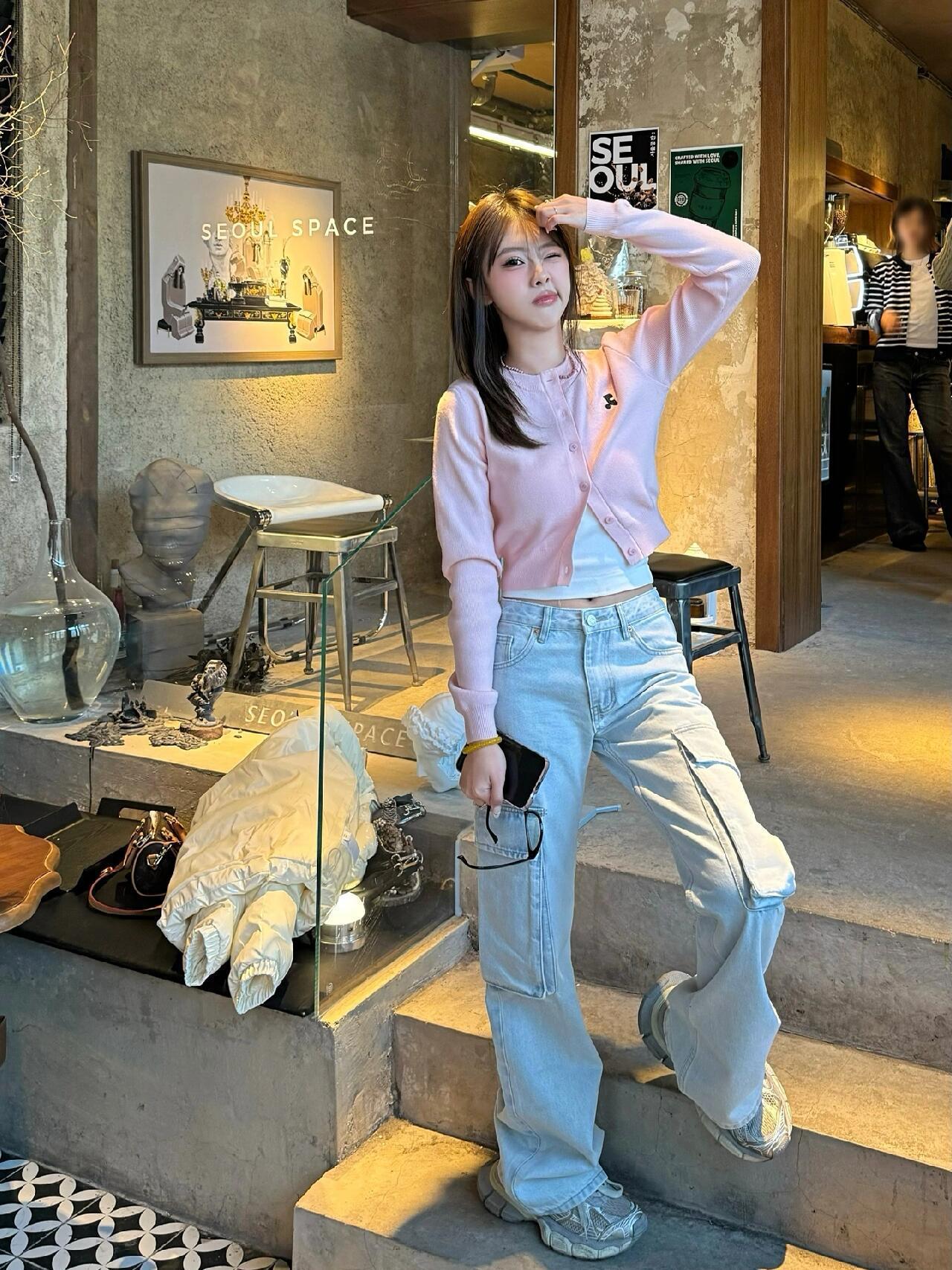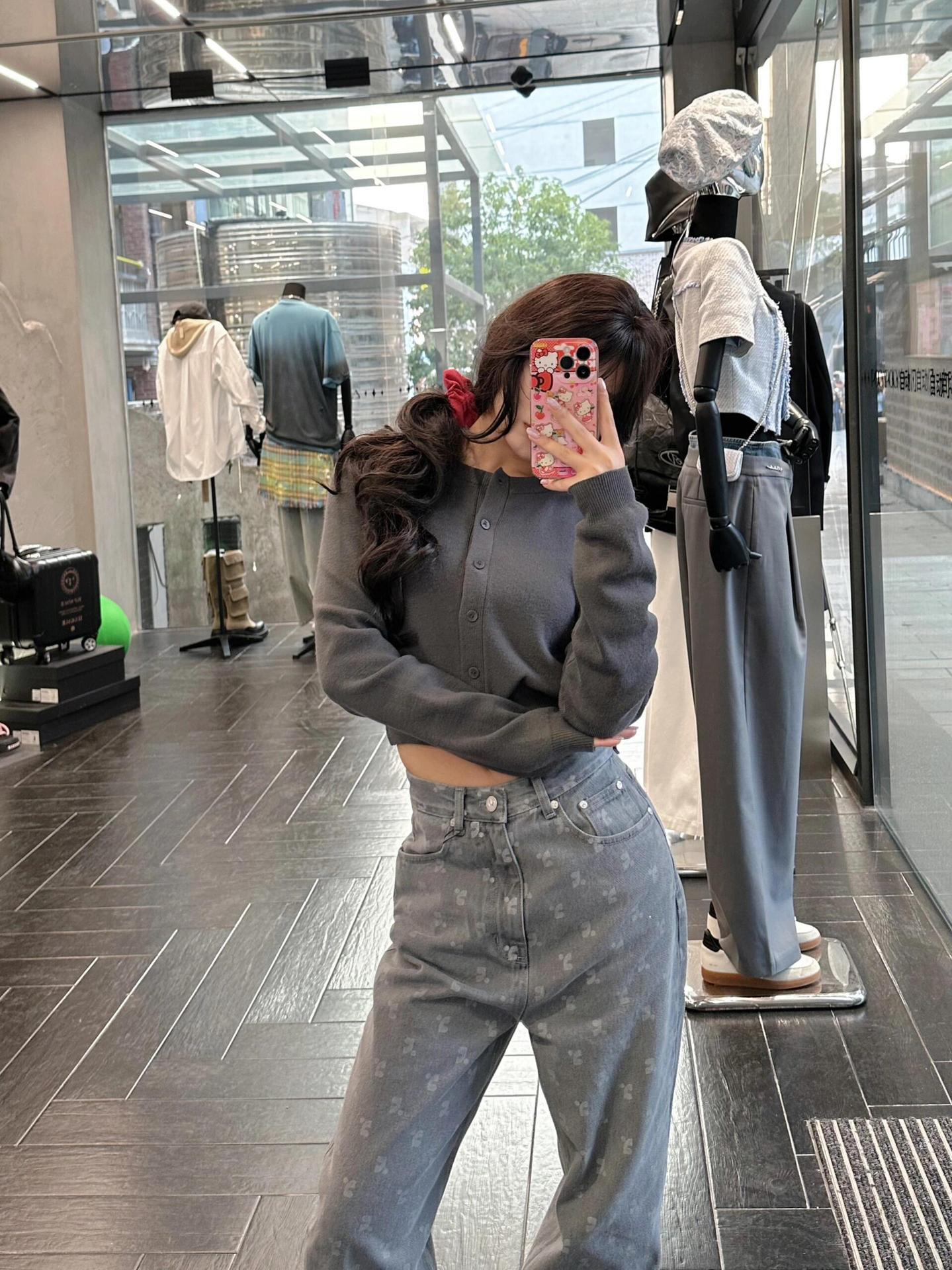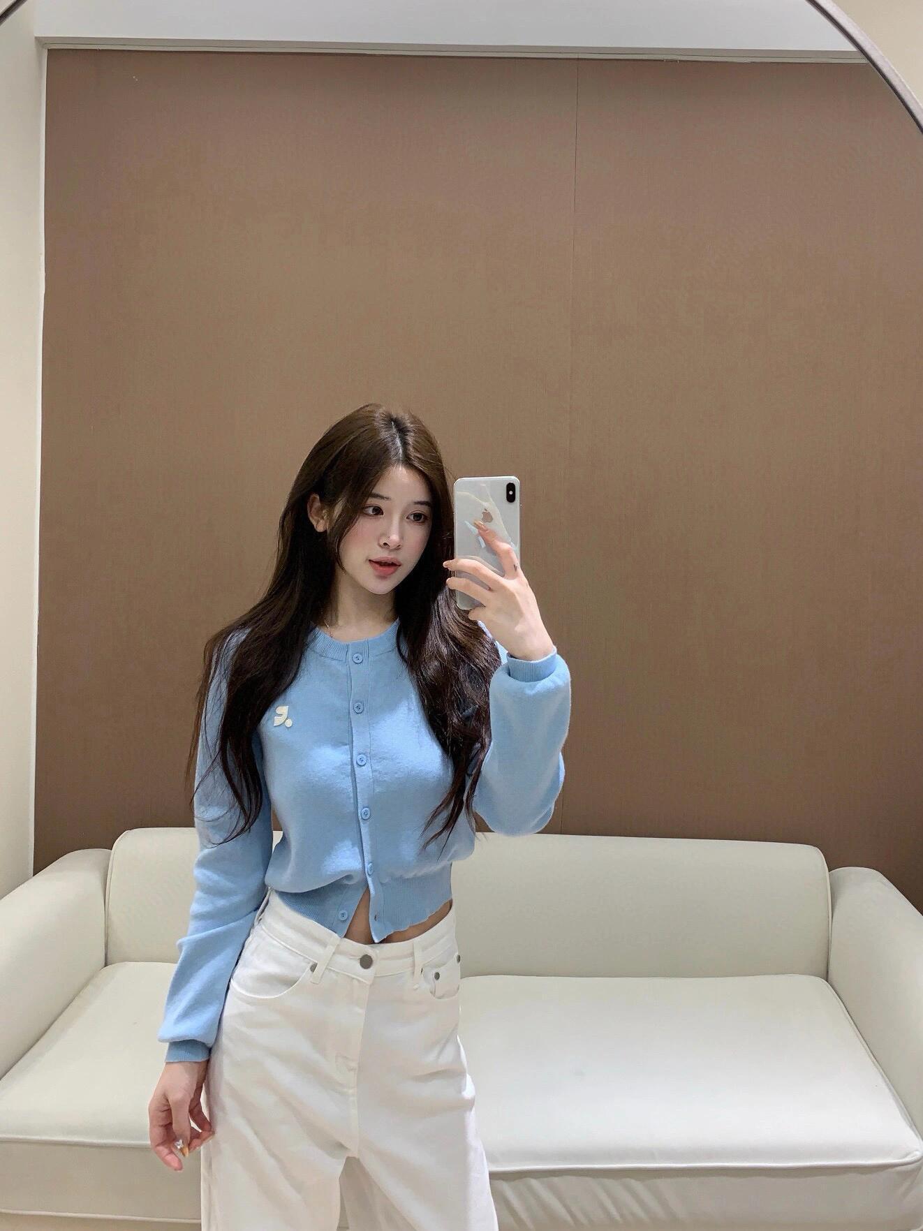 한국 트렌디 브랜드 restandrecreation 짧은 슬림 니트 스웨터 RR 자수 카디건 스웨터 재킷 여성용스토어 가기
