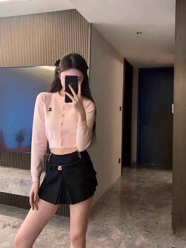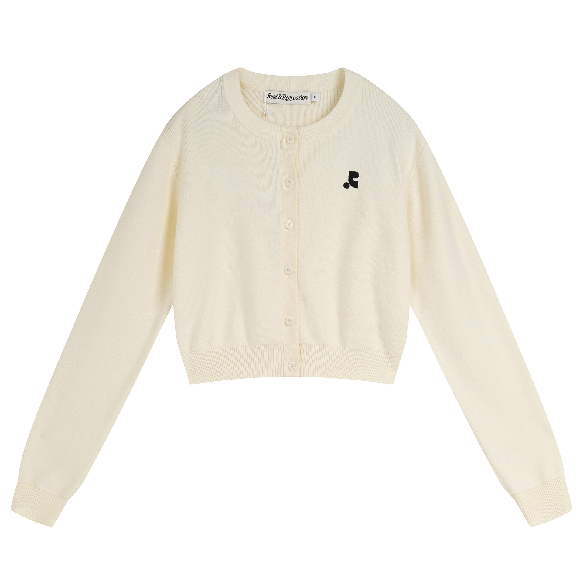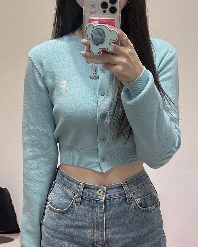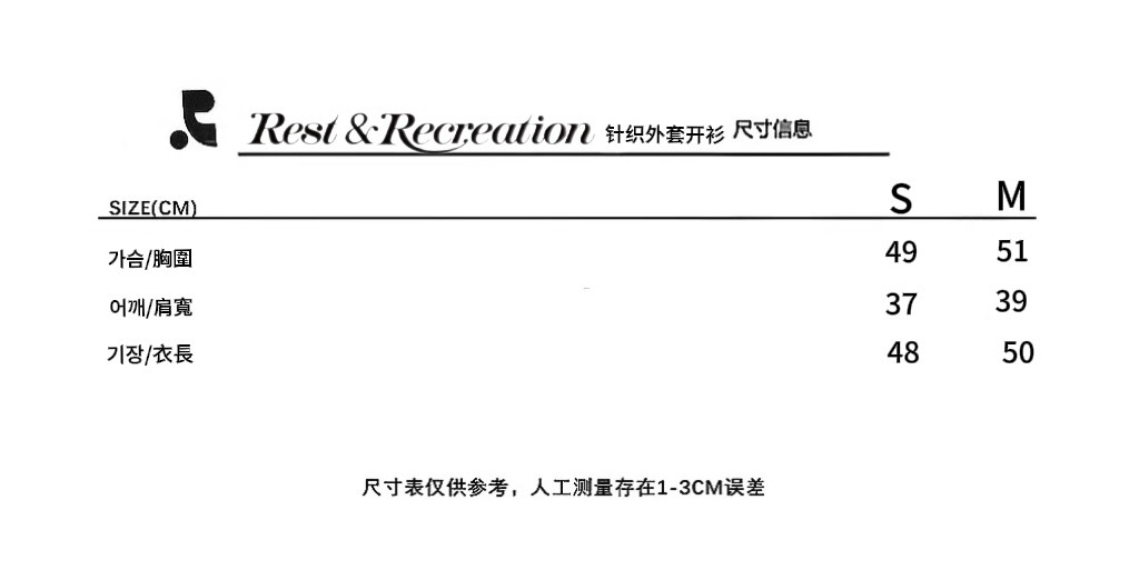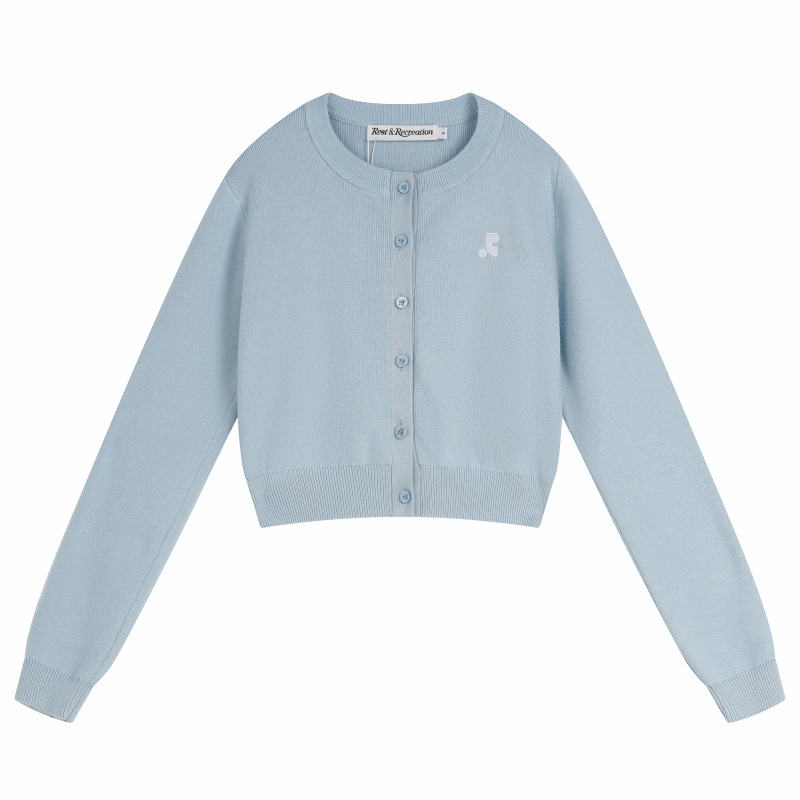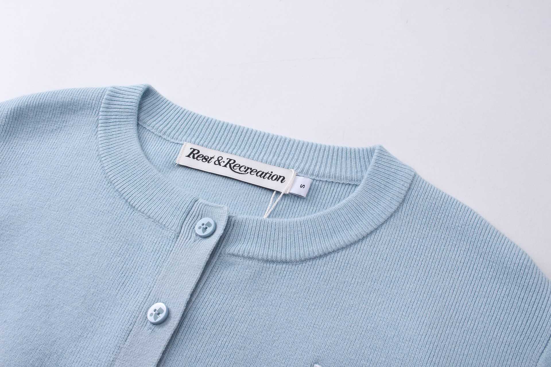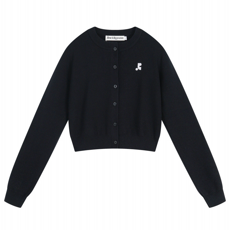 한국 트렌디 브랜드 restandrecreation 짧은 슬림 니트 스웨터 RR 자수 카디건 스웨터 재킷 여성용