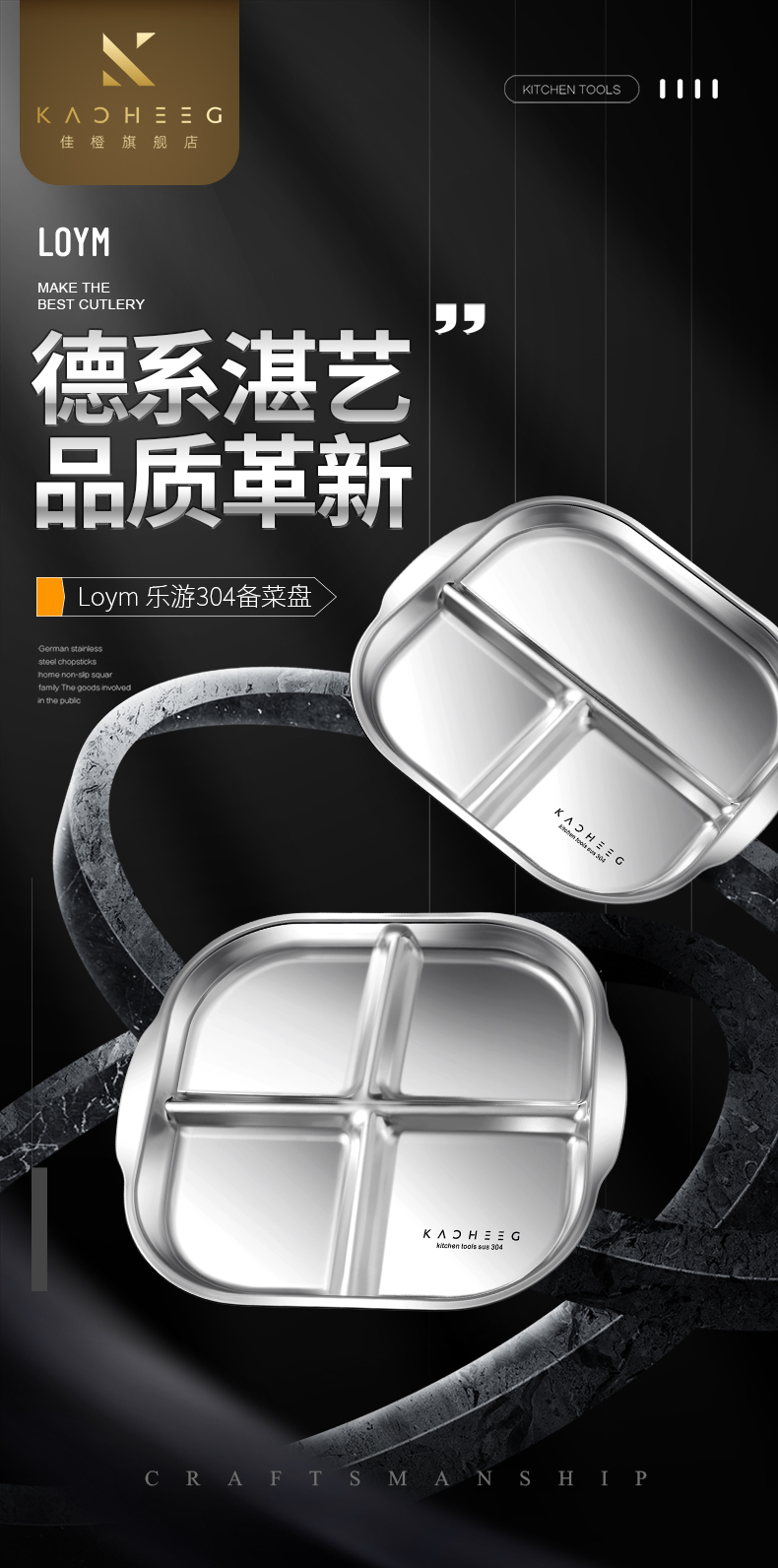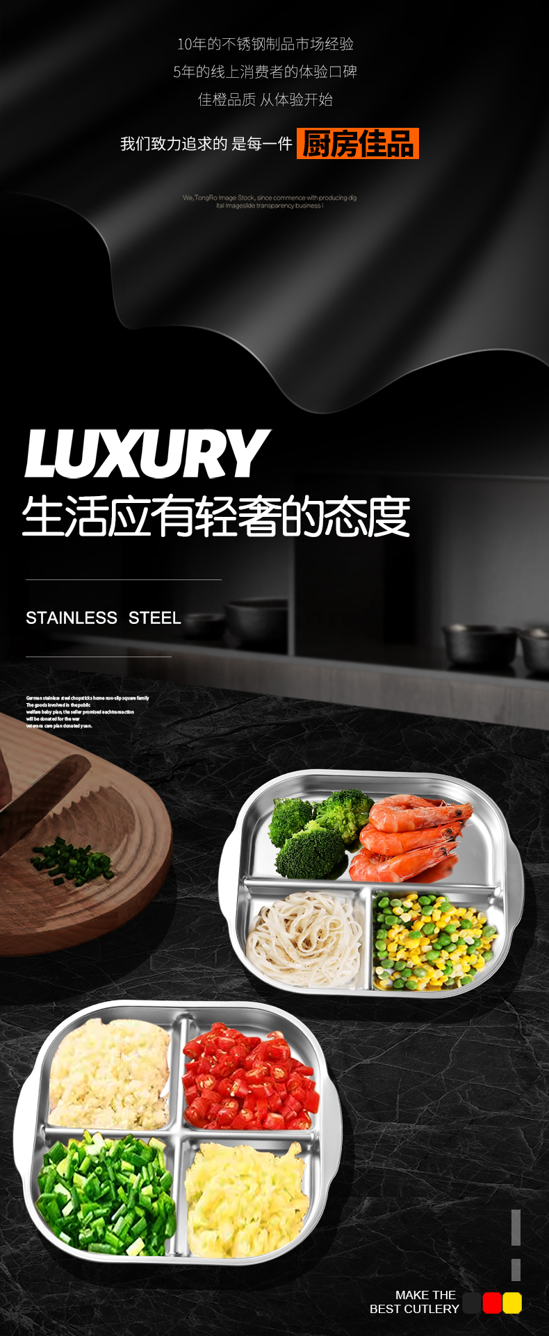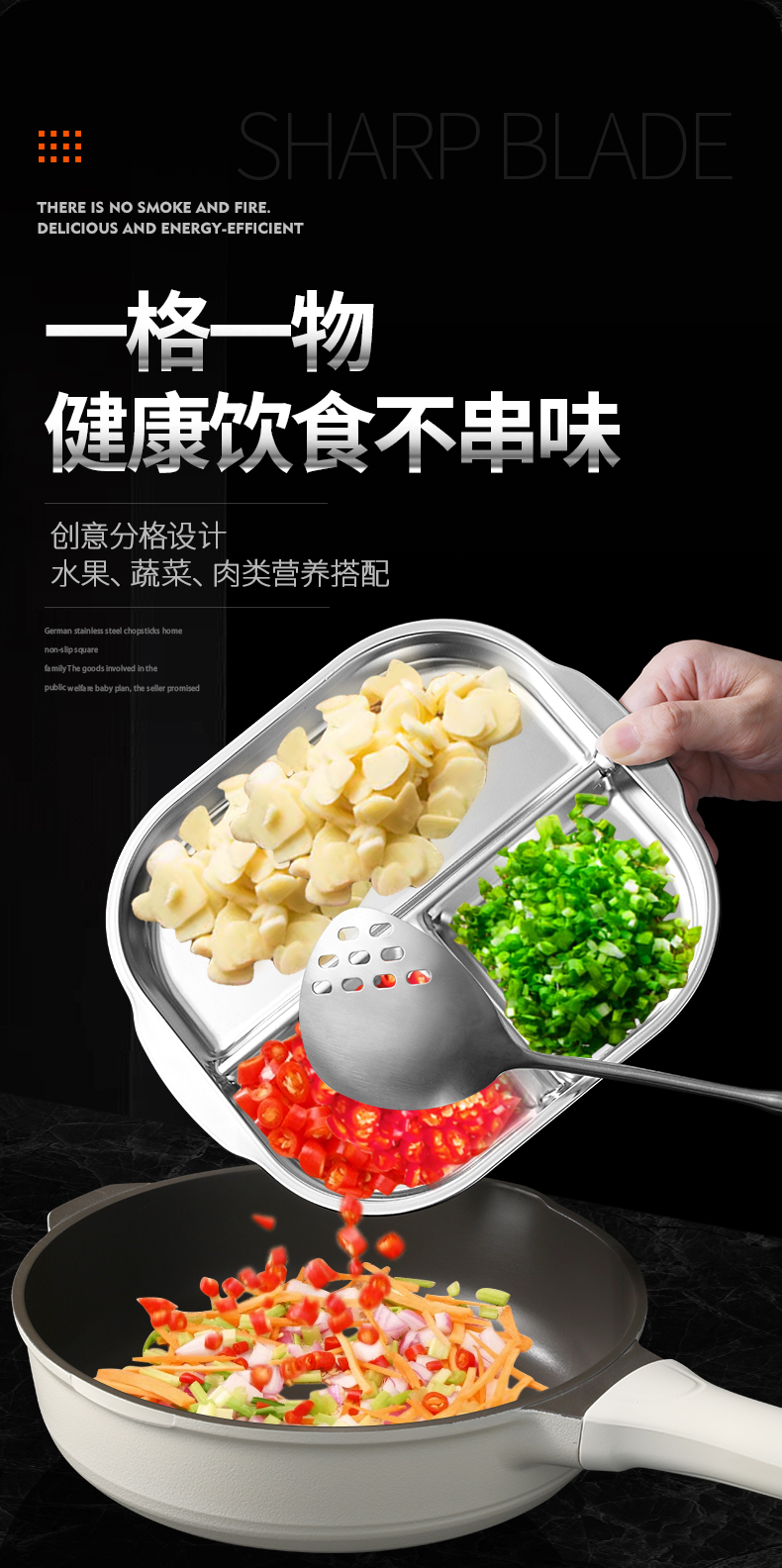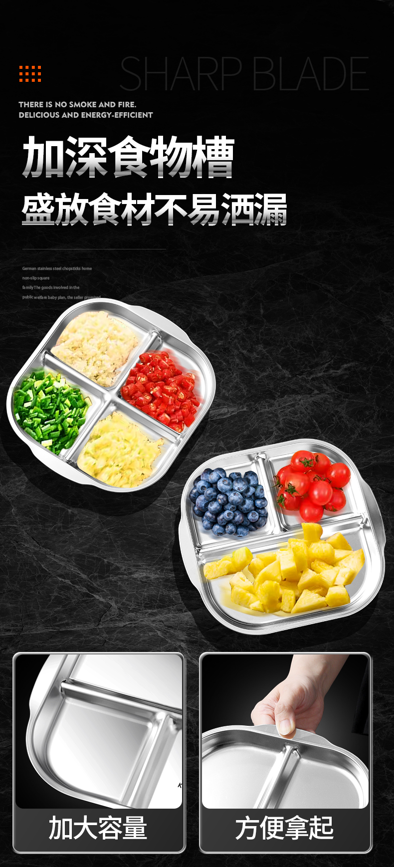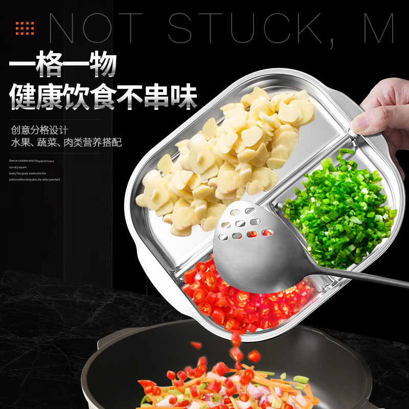 ✅ 다기능 칸막이 반찬 접시 304 스테인레스 스틸 양파, 생강, 마늘 준비 접시 4칸 디너 접시 주방 조미료 접시스토어 가기