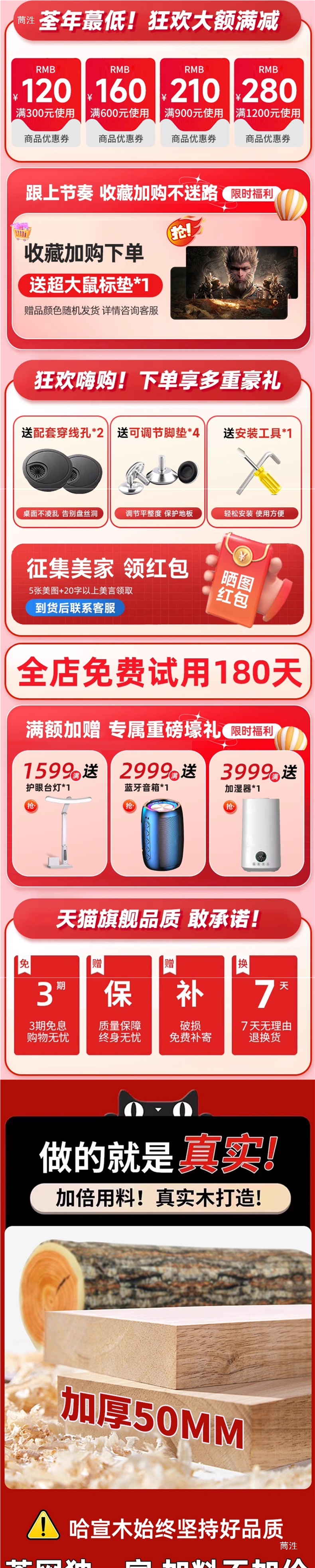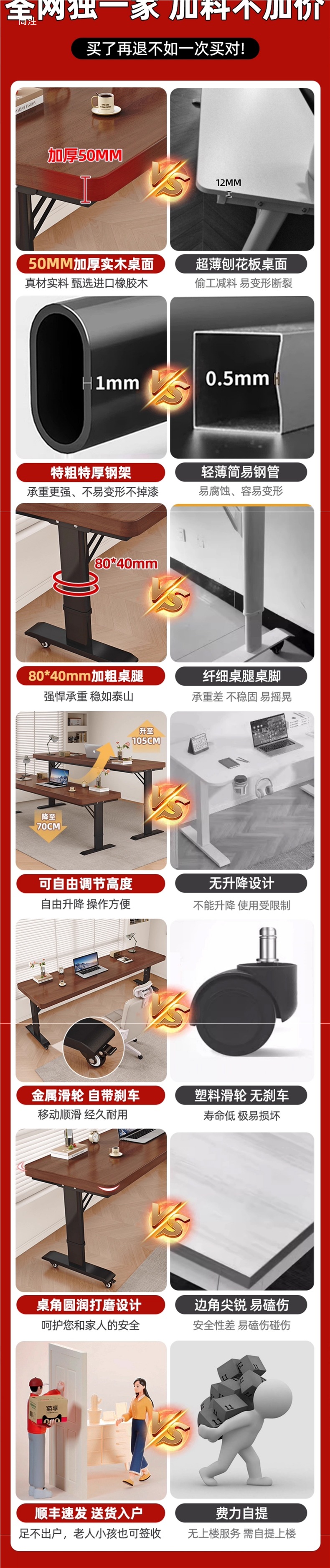• [업그레이드된 50MM 원목 데스크탑] 검정색 + 흰색 프레임 [자유 리프팅]