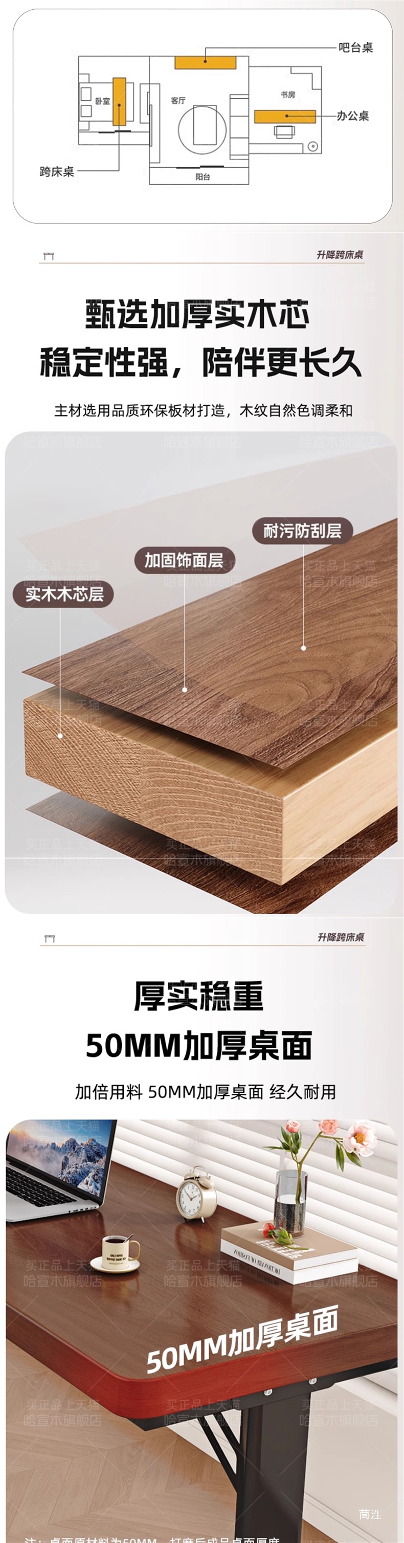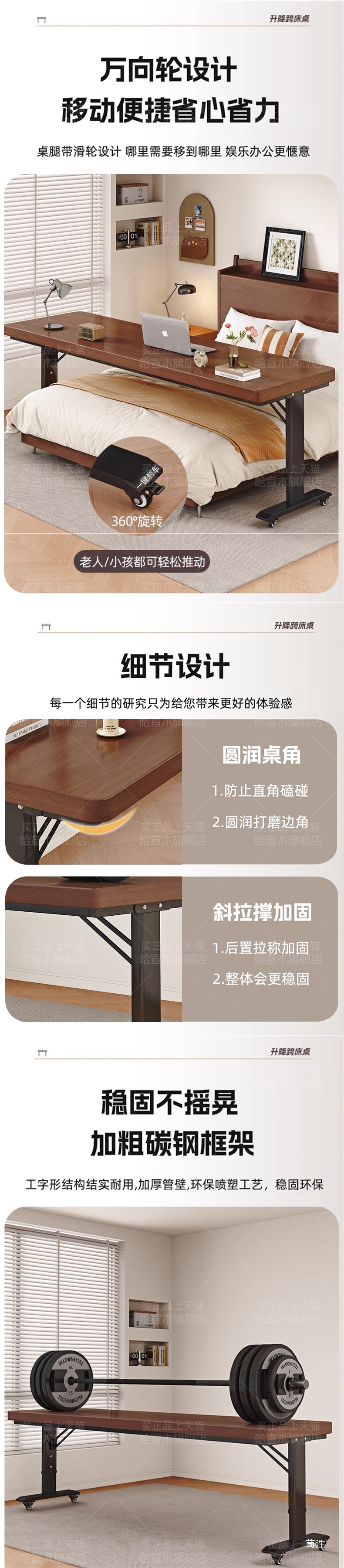 단단한 나무 컴퓨터 책상, 침대 옆 테이블, 이동식 리프팅 테이블, 침실 게으른 책상, 가정용 긴 책상, 침대 크로스 테이블스토어 가기
