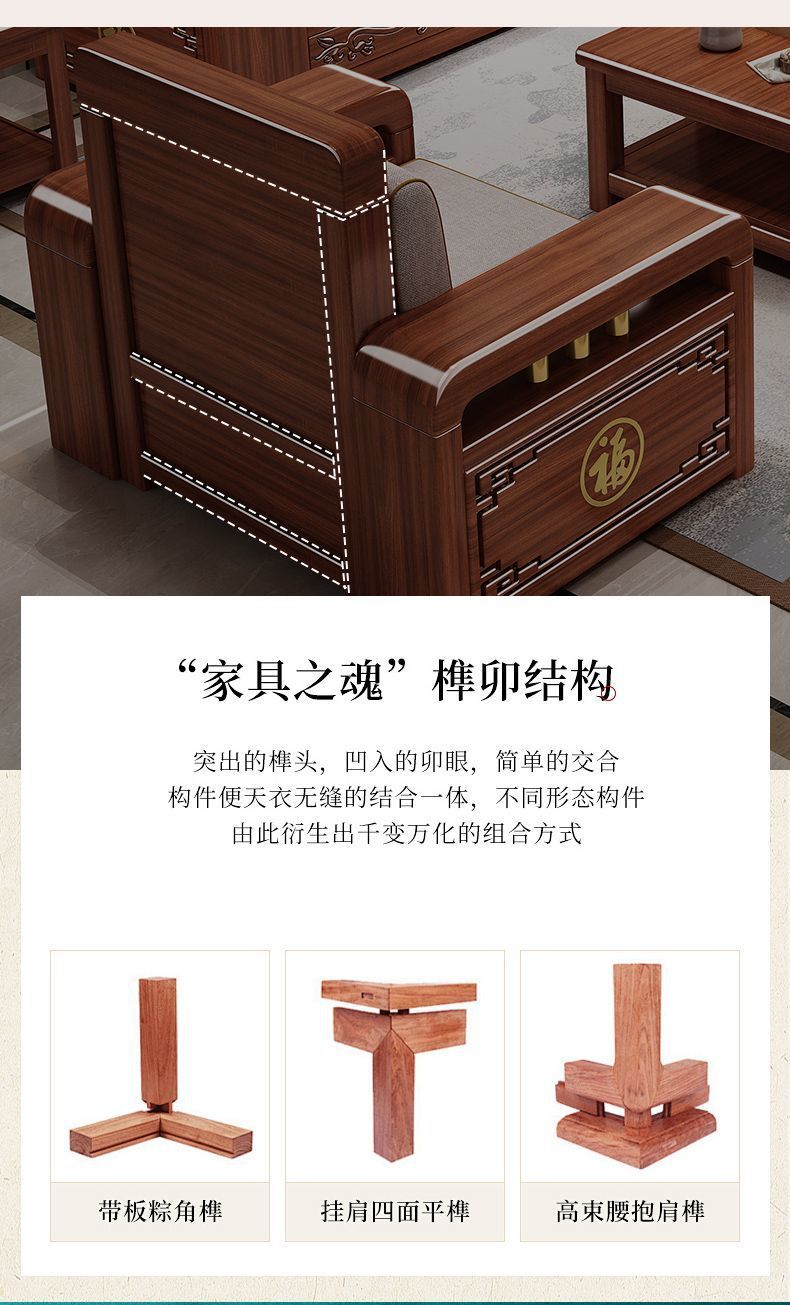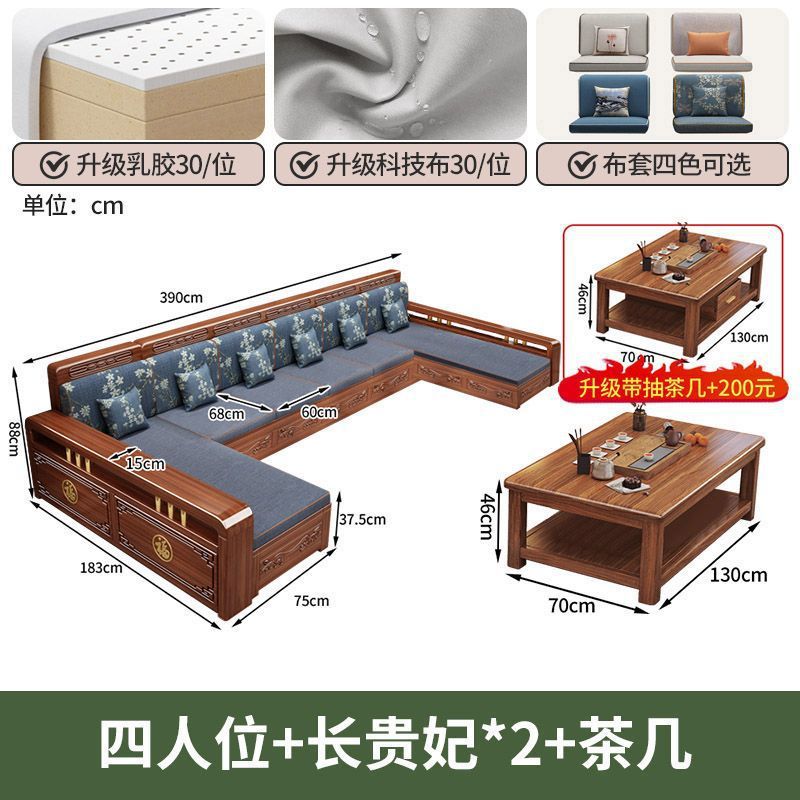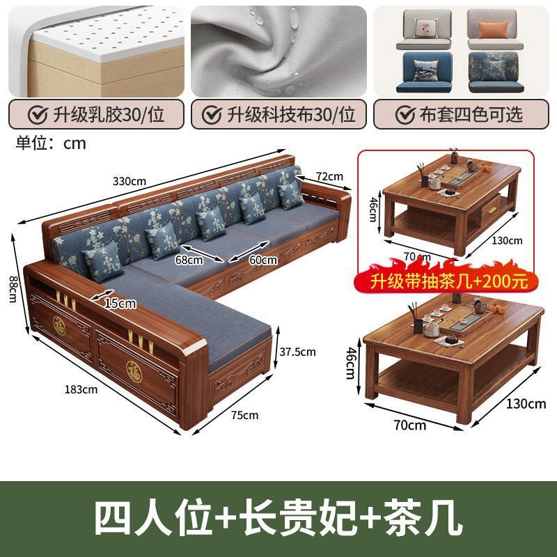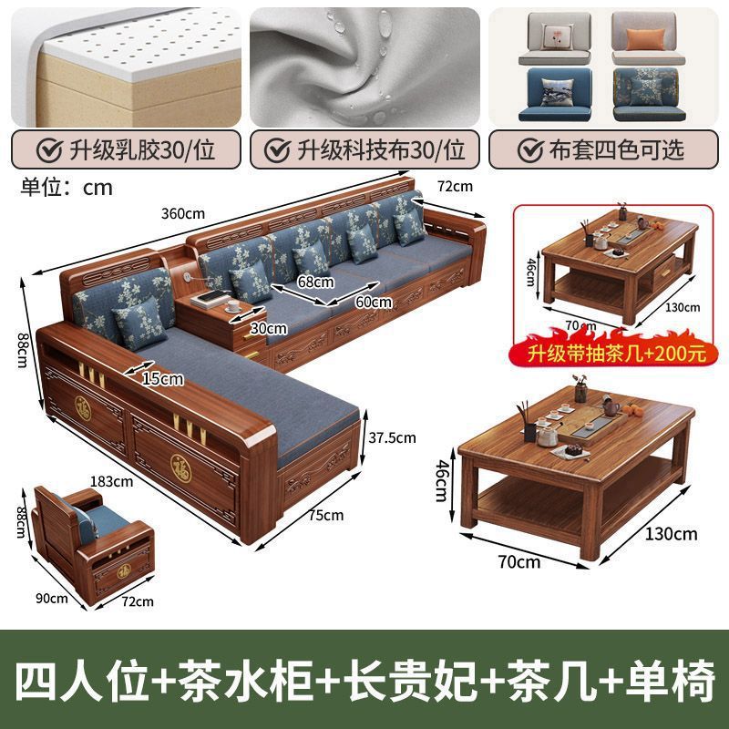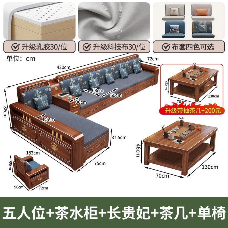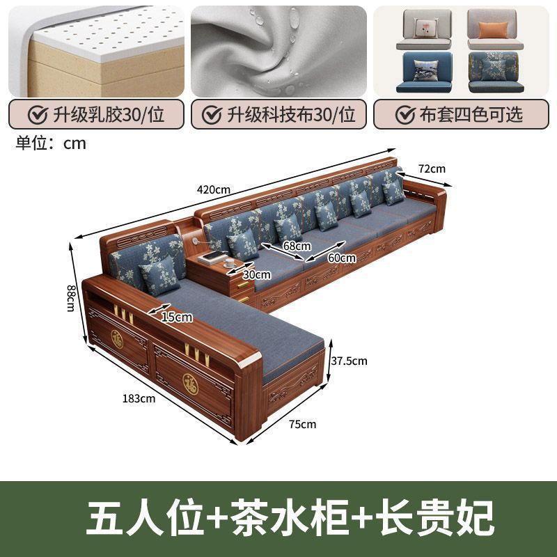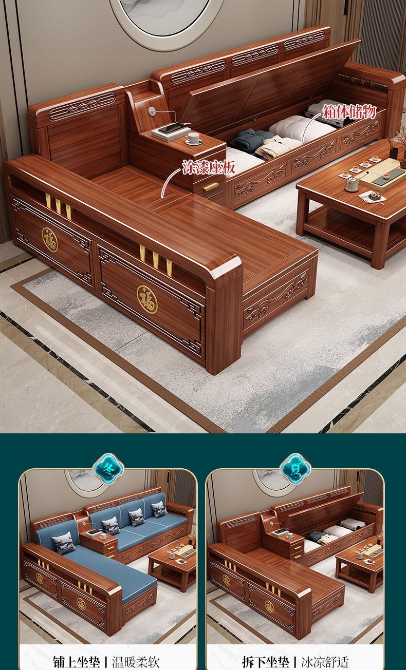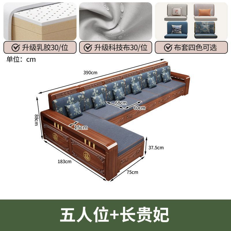 새로운 중국 스타일 호두 나무 조각 단단한 나무 소파 조합 홈 거실 겨울과 여름 이중 용도 작은 아파트 스토리지 가구스토어 가기