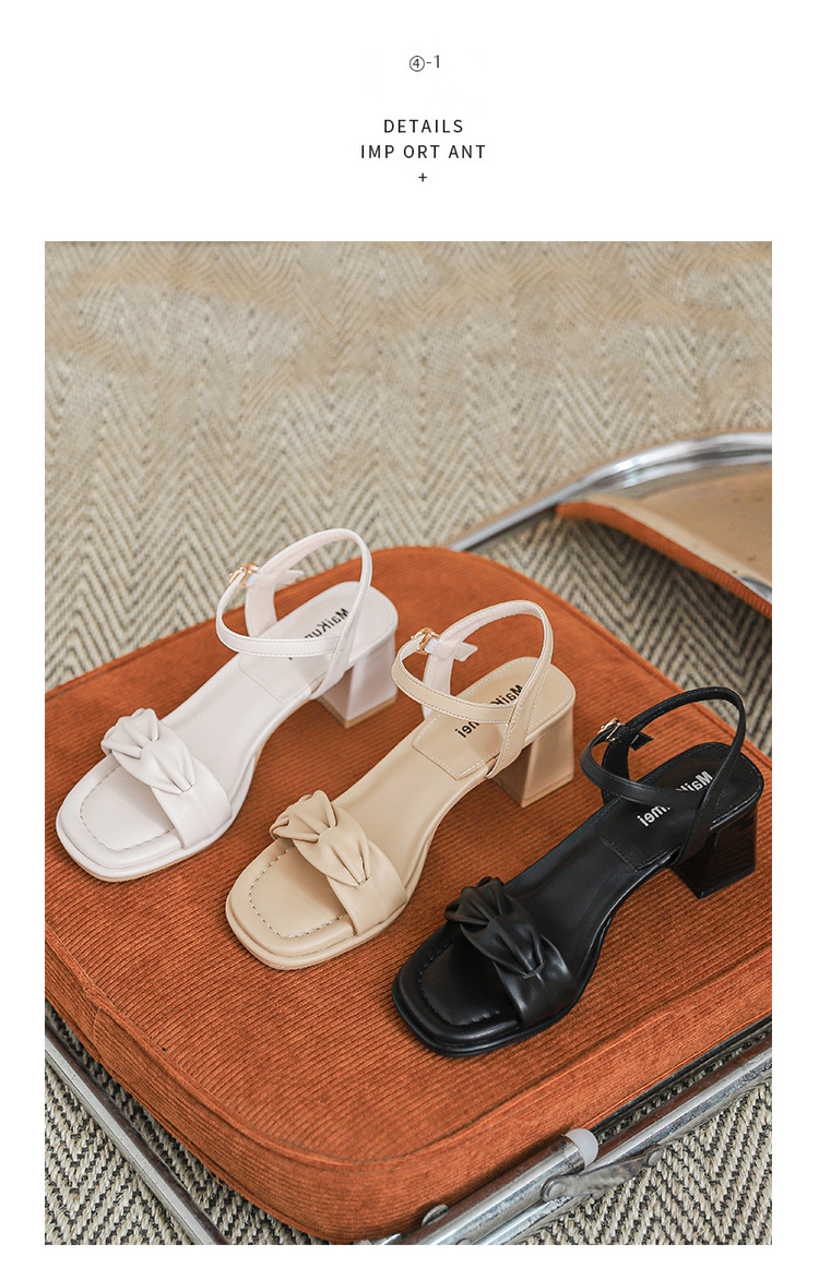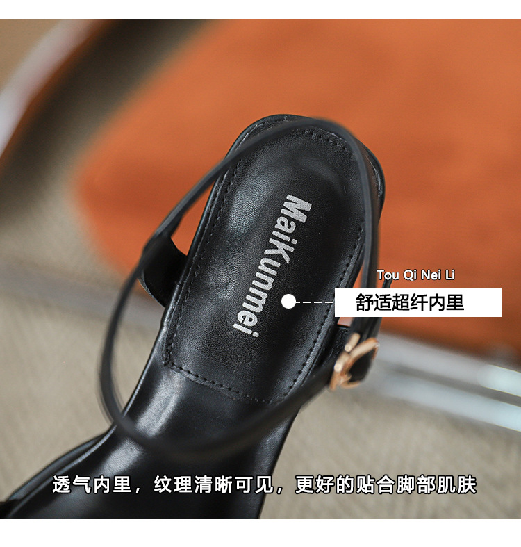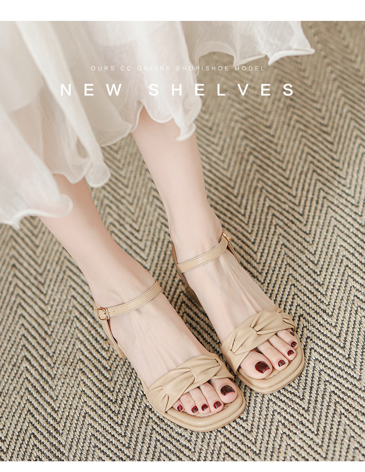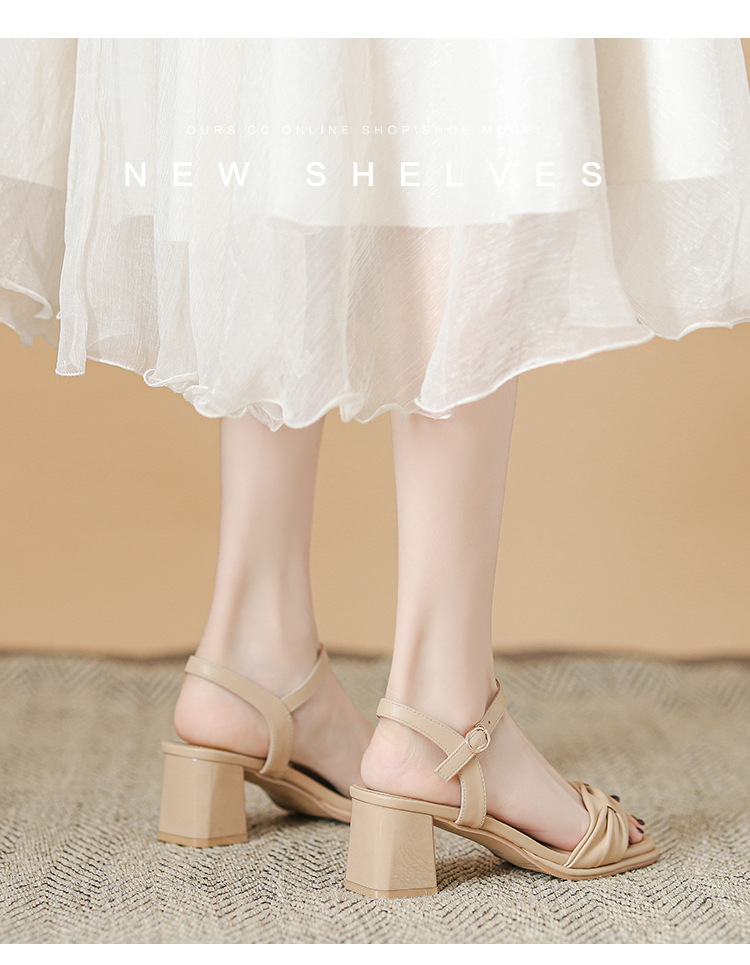 여성용 천연 가죽 샌들, 두꺼운 굽, 오픈 토우, 여성용 하이힐, 2025 여름 신상품, 피쉬 입 로우 힐 샌들스토어 가기
