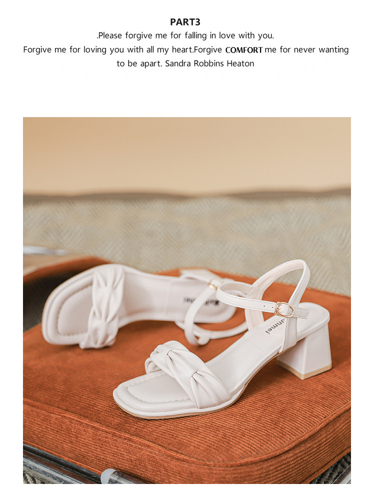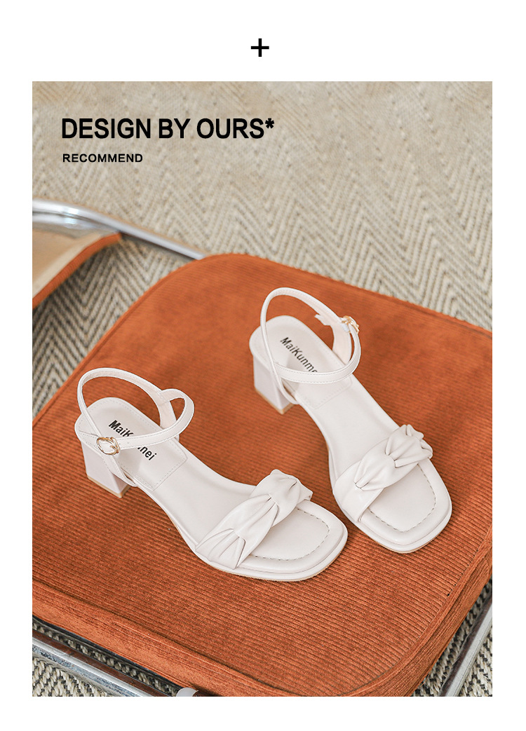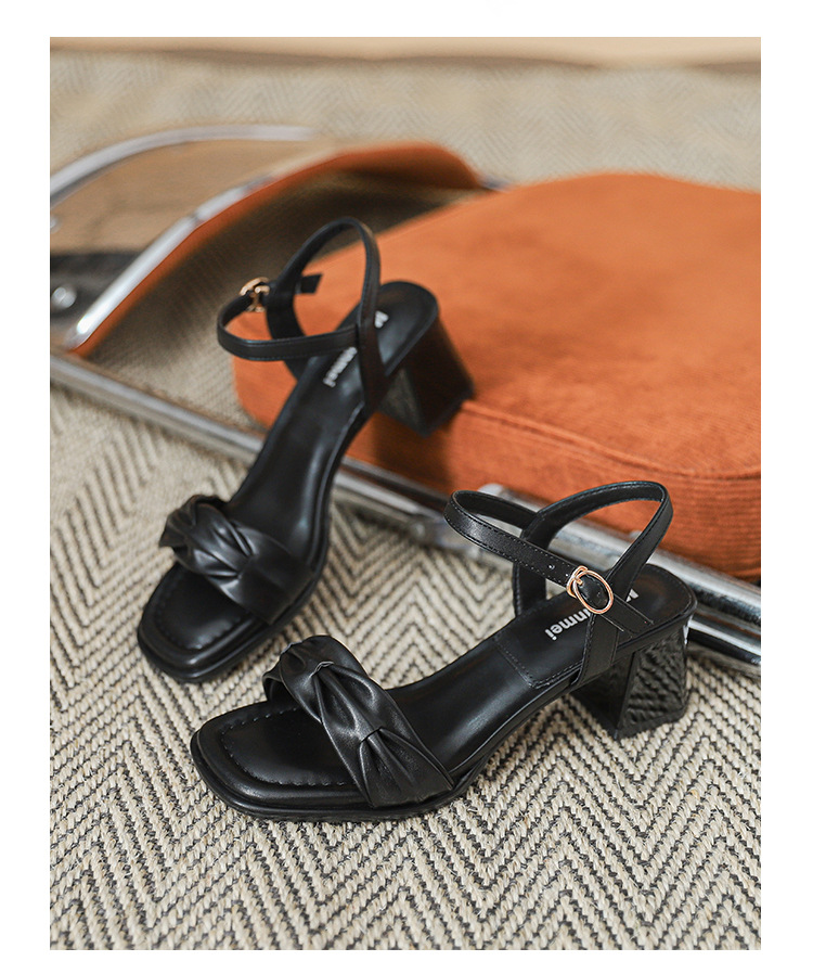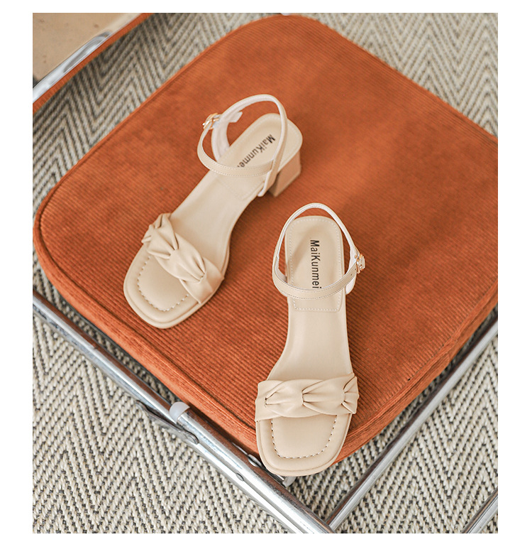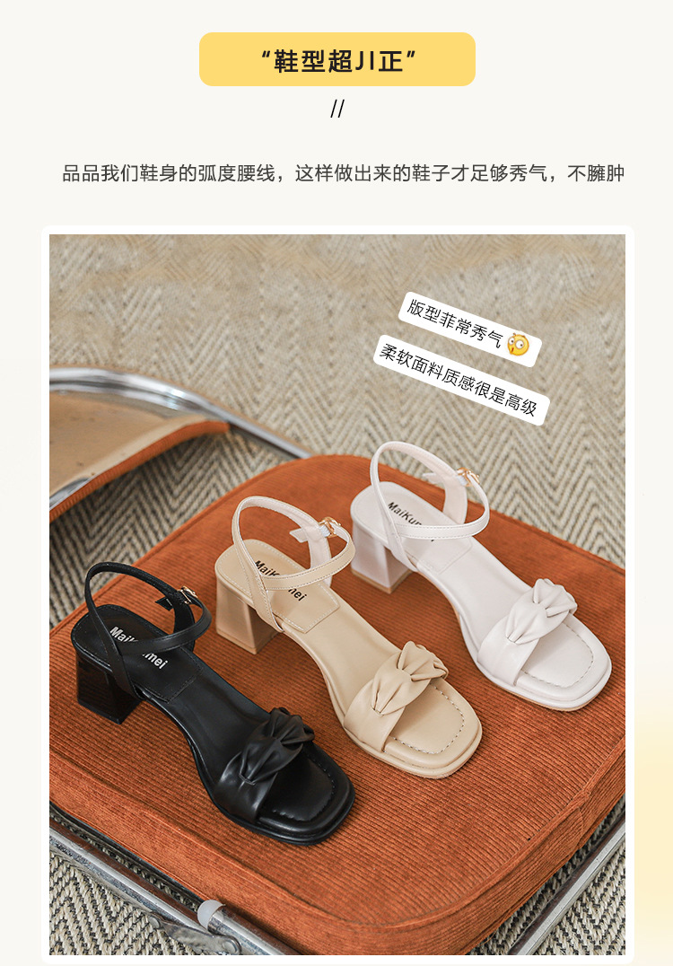 여성용 천연 가죽 샌들, 두꺼운 굽, 오픈 토우, 여성용 하이힐, 2025 여름 신상품, 피쉬 입 로우 힐 샌들스토어 가기
