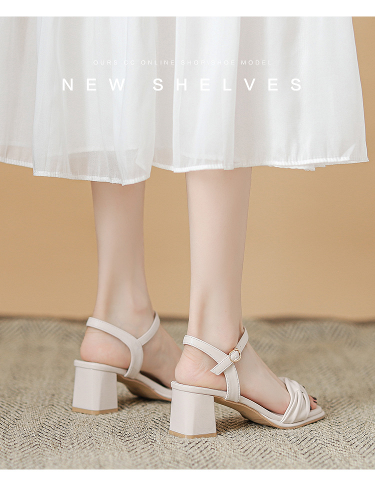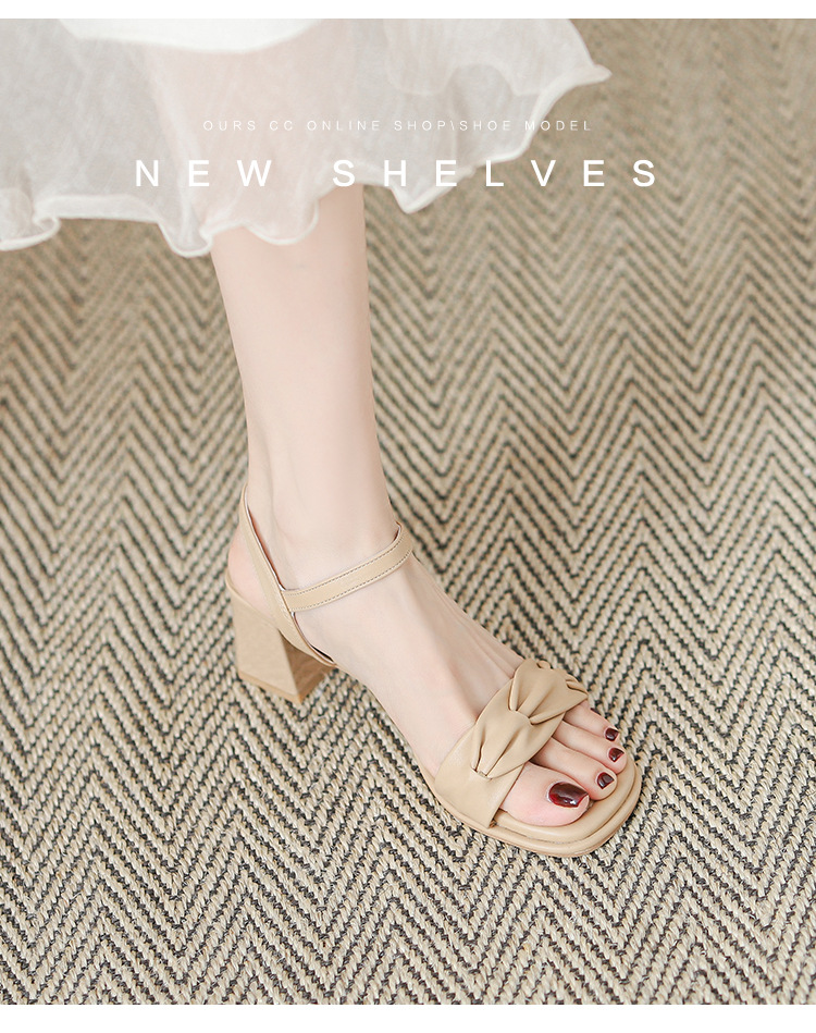 여성용 천연 가죽 샌들, 두꺼운 굽, 오픈 토우, 여성용 하이힐, 2025 여름 신상품, 피쉬 입 로우 힐 샌들