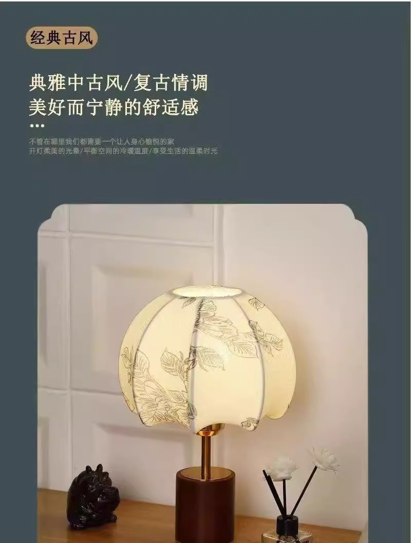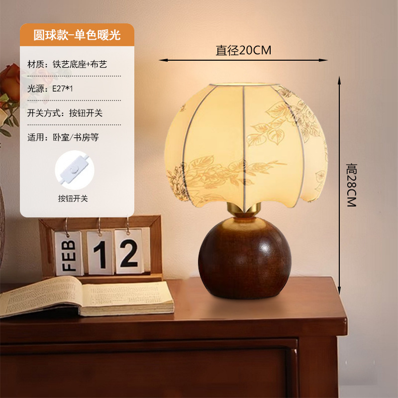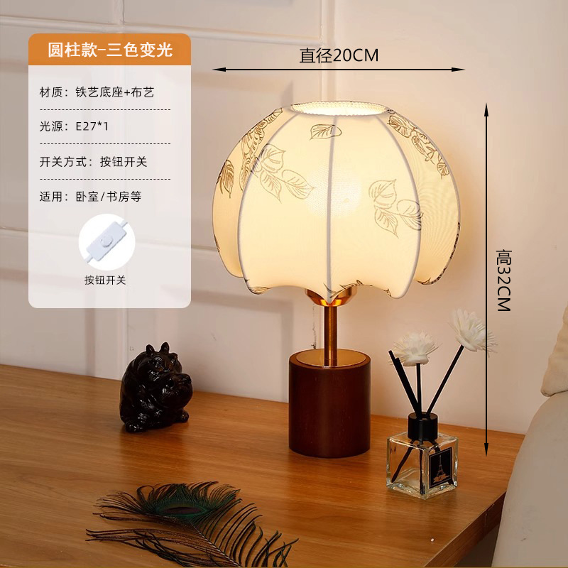 복고풍 침실 테이블 램프, 중세 스타일의 인쇄 패브릭 침대 옆 테이블, 야간 조명, 거실 서재, 고급 분위기의 침대 옆 램프