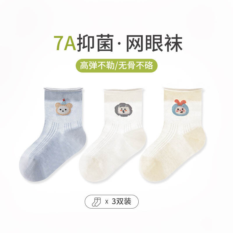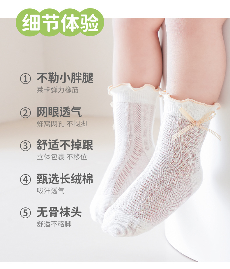 25 봄 여름 클래스 A 아기 양말 어린이 종아리 양말 뼈없는 신생아 양말 얇은 빗질면 메쉬 통기성스토어 가기