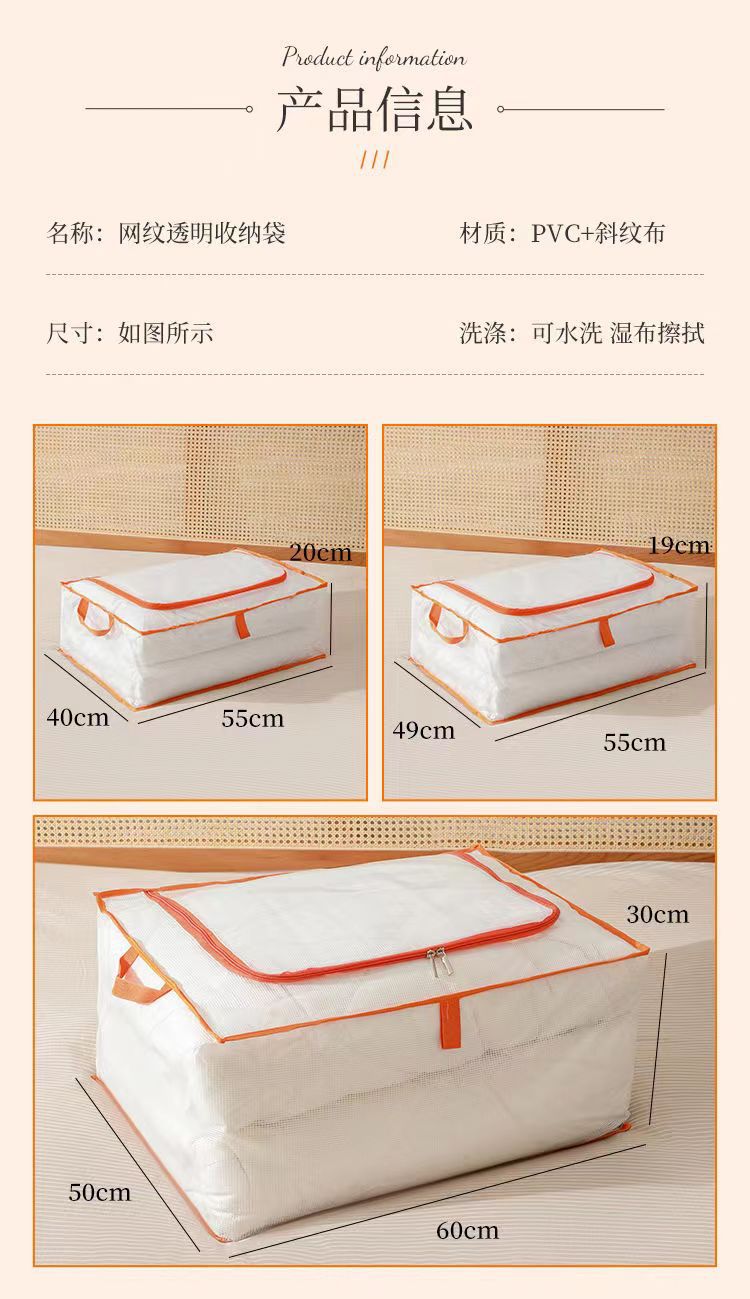 투명 메쉬 이불 보관 가방 대용량 접이식 가정용 옷장 의류 이동 포장 침대 보관 가방