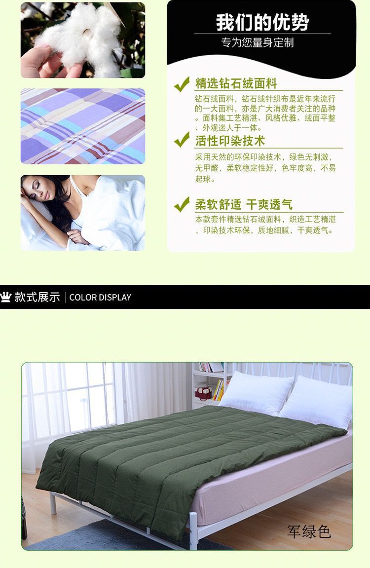 클리어런스 면 이불 따뜻한 두꺼운 이불 육군 녹색 군사 훈련 이불 학생 기숙사 노동 보호 기숙사 싱글스토어 가기