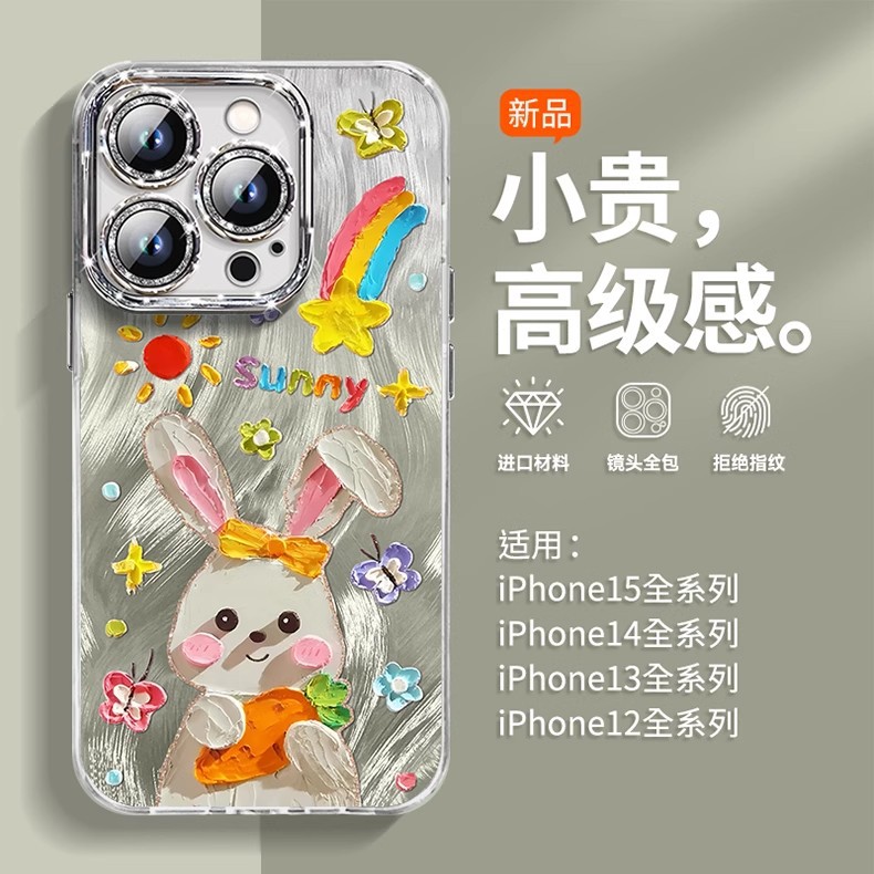 • [깃털 거즈 흰색 유화 무지개 토끼] 반짝이는 깃털 거즈★렌즈 필름이 함께 제공됩니다.