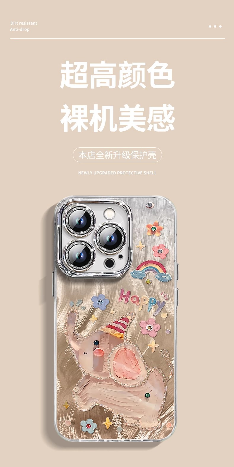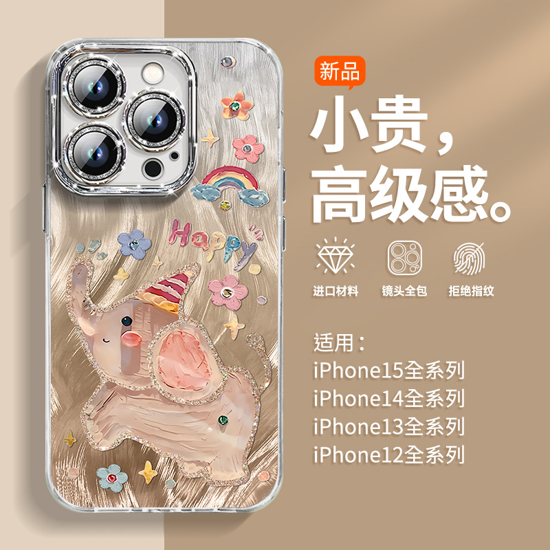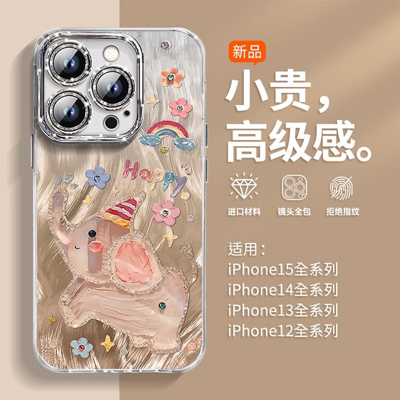 Yusha Happy Dumbo Apple 16 휴대폰 케이스에 적합 렌즈 필름이 포함된 새로운 iPhone15 글리터 16pro스토어 가기