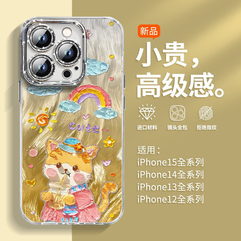 • [깃털 거즈 흰색 유화 무지개 고양이] 반짝이는 깃털 거즈★렌즈 필름이 함께 제공됩니다.