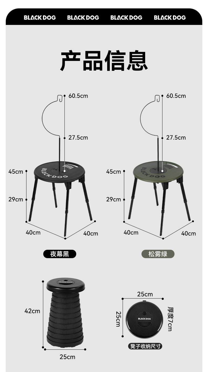 Blackdog 야외 접이식 캠핑 테이블 의자 작은 원형 테이블 초경량 휴대용 피크닉 피크닉 장비 커피 테이블스토어 가기