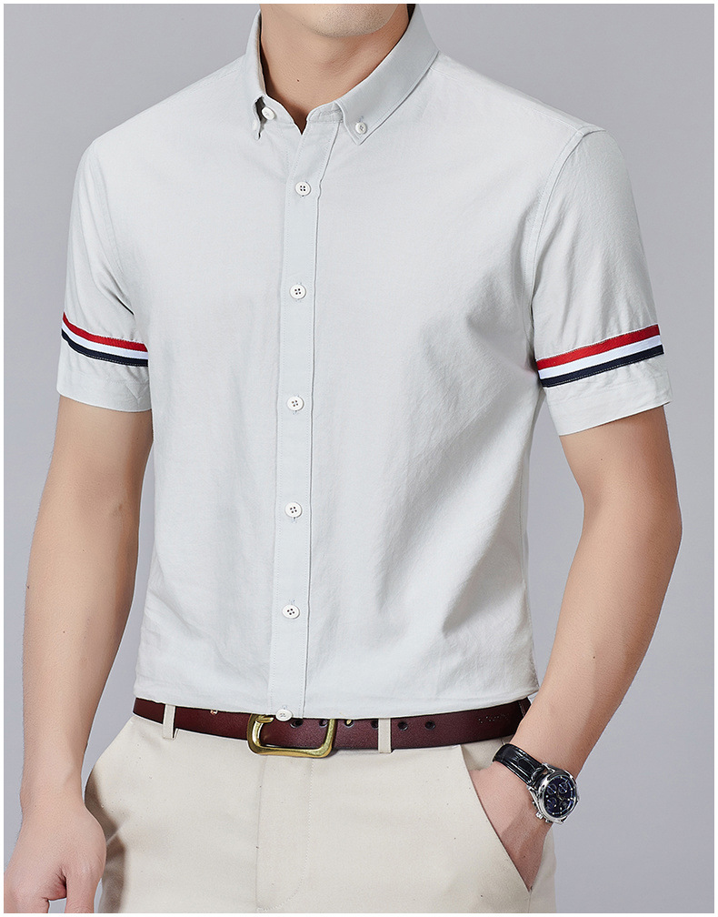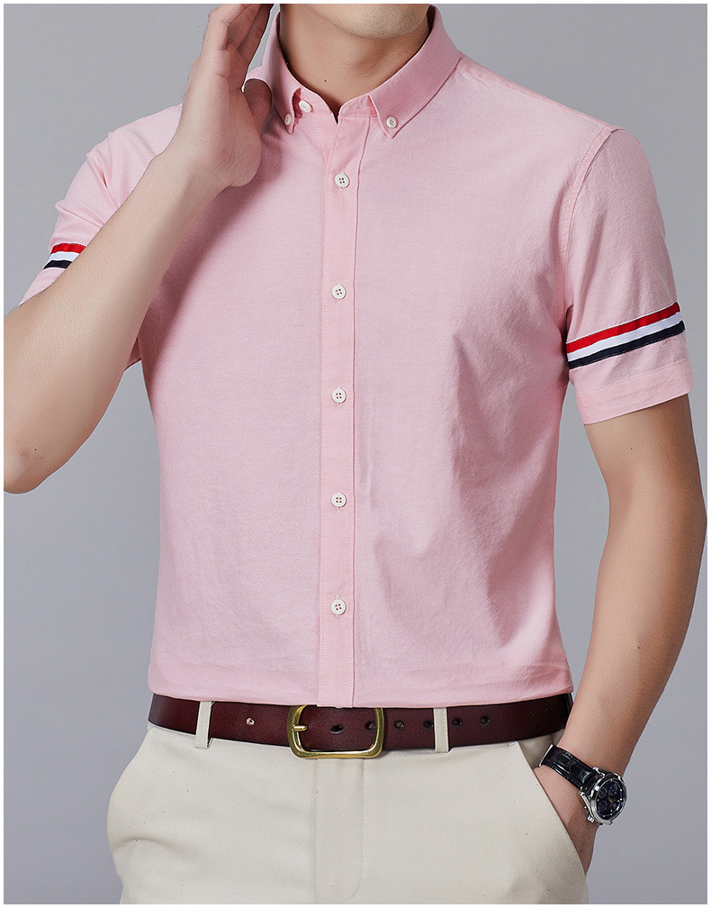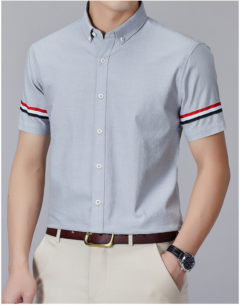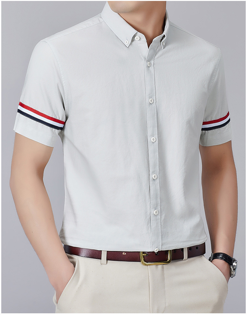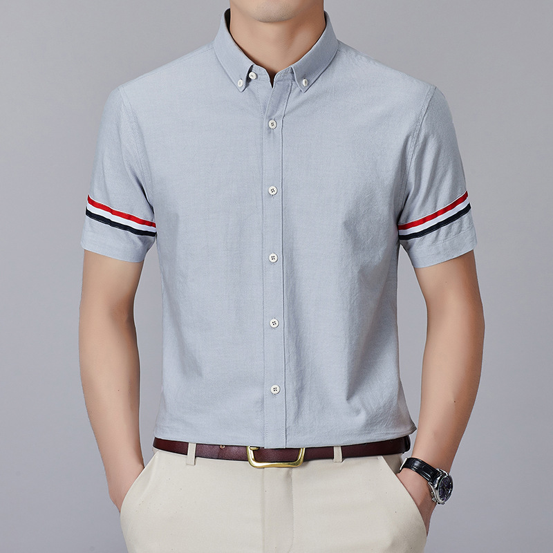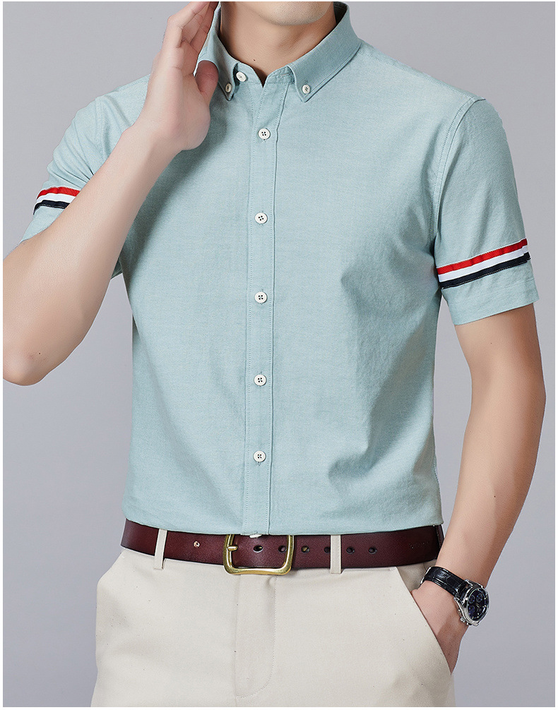 하이 엔드 100 면 반팔 셔츠 남성 트렌디 한 캐주얼 비즈니스 솔리드 컬러 옷깃 남성 의류 청소년 셔츠 트렌디스토어 가기