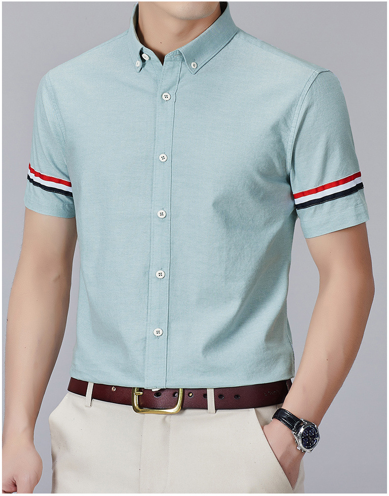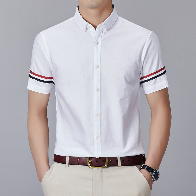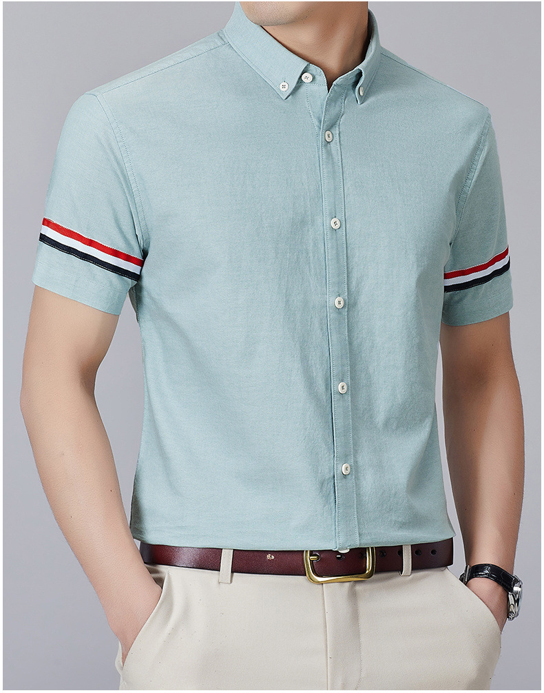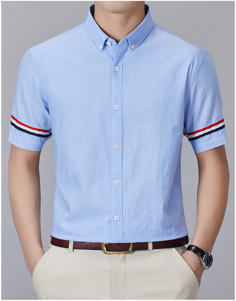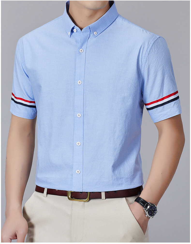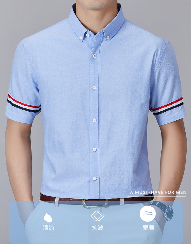 하이 엔드 100 면 반팔 셔츠 남성 트렌디 한 캐주얼 비즈니스 솔리드 컬러 옷깃 남성 의류 청소년 셔츠 트렌디스토어 가기