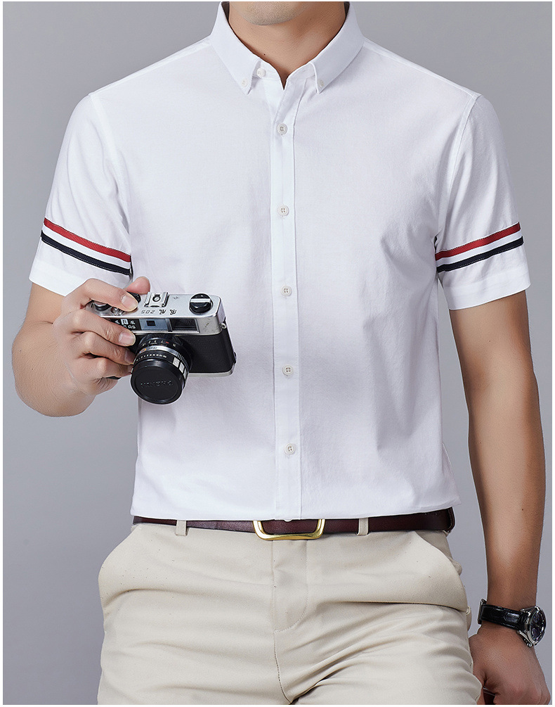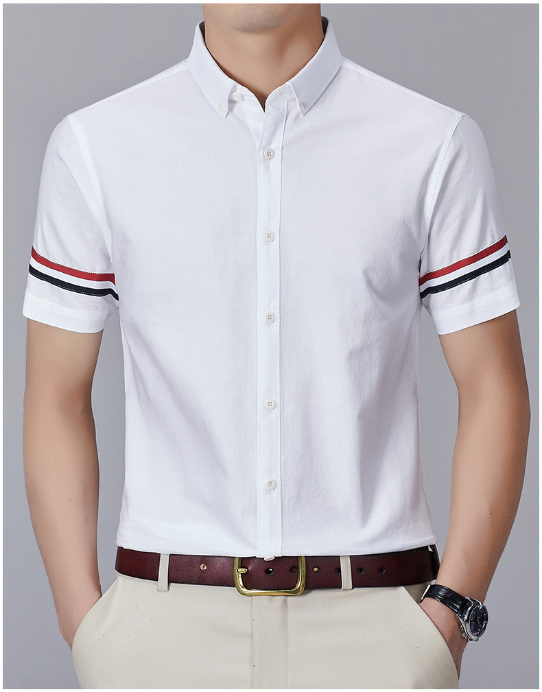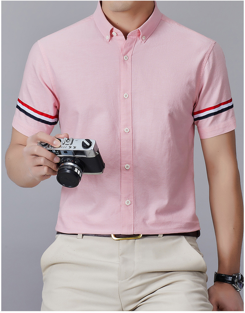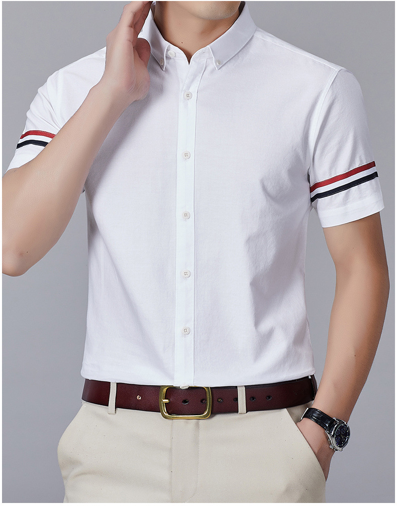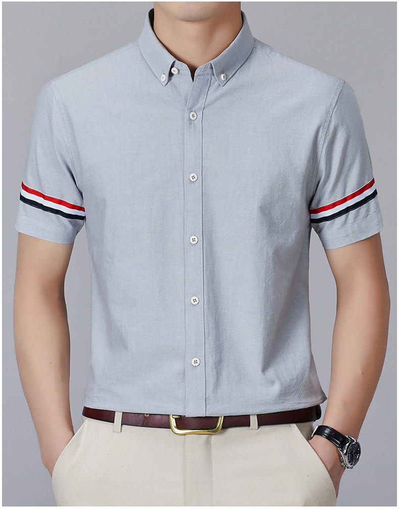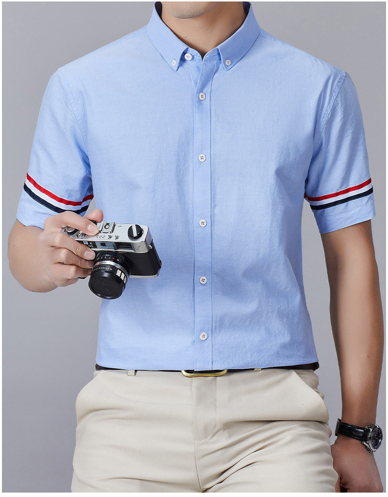 하이 엔드 100 면 반팔 셔츠 남성 트렌디 한 캐주얼 비즈니스 솔리드 컬러 옷깃 남성 의류 청소년 셔츠 트렌디스토어 가기