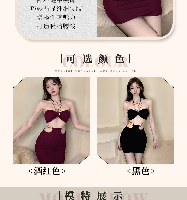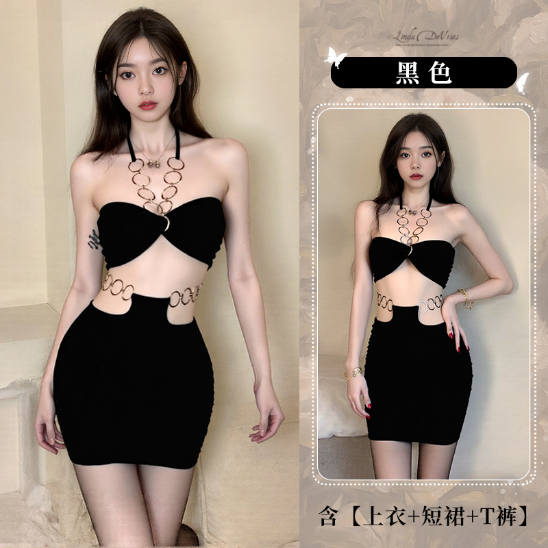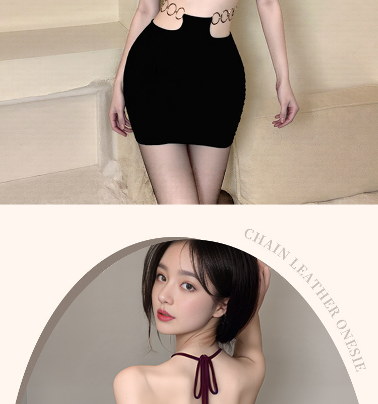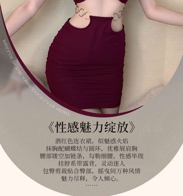 새로운 여성 섹스 재미 속옷 섹시한 계모의 원피스 순수한 매력 매달려 목 금속 반지 백리스 스트랩리스 울트라 짧은 엉덩이스토어 가기