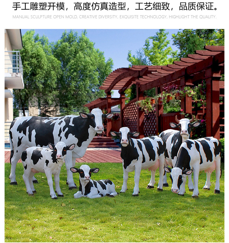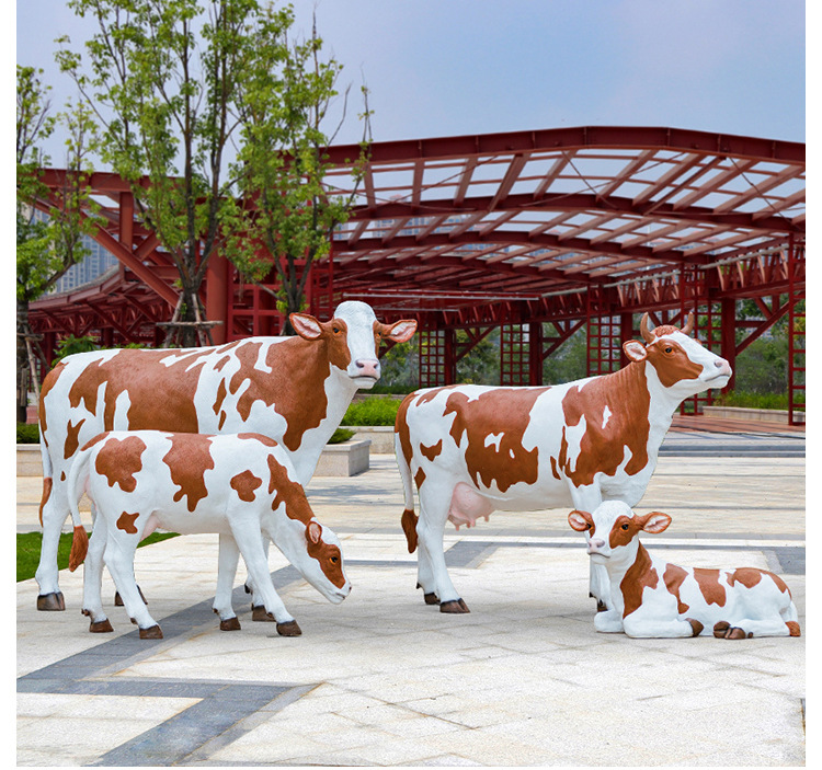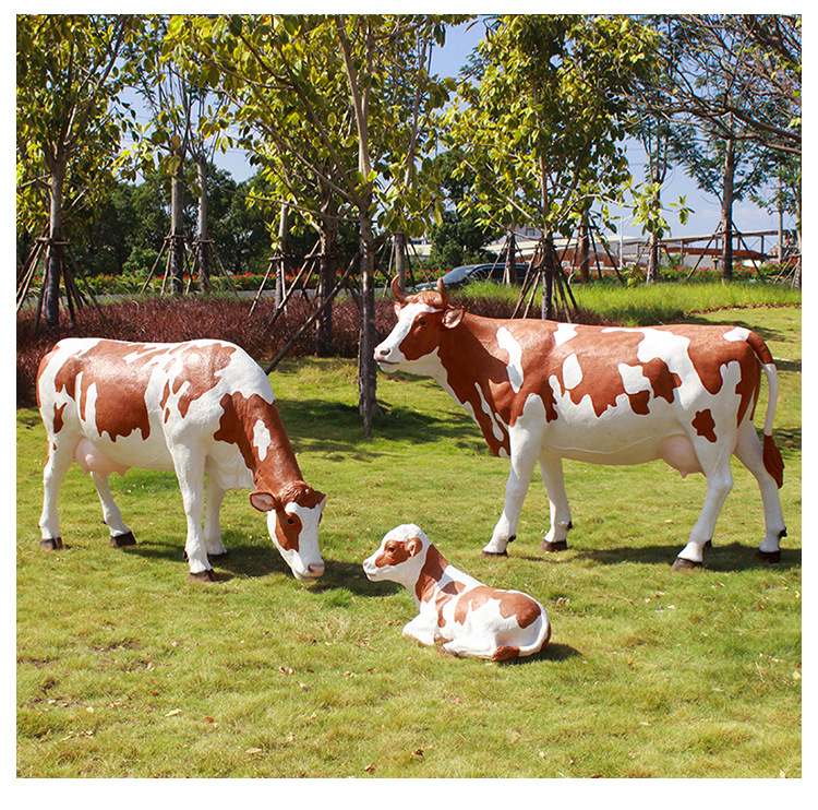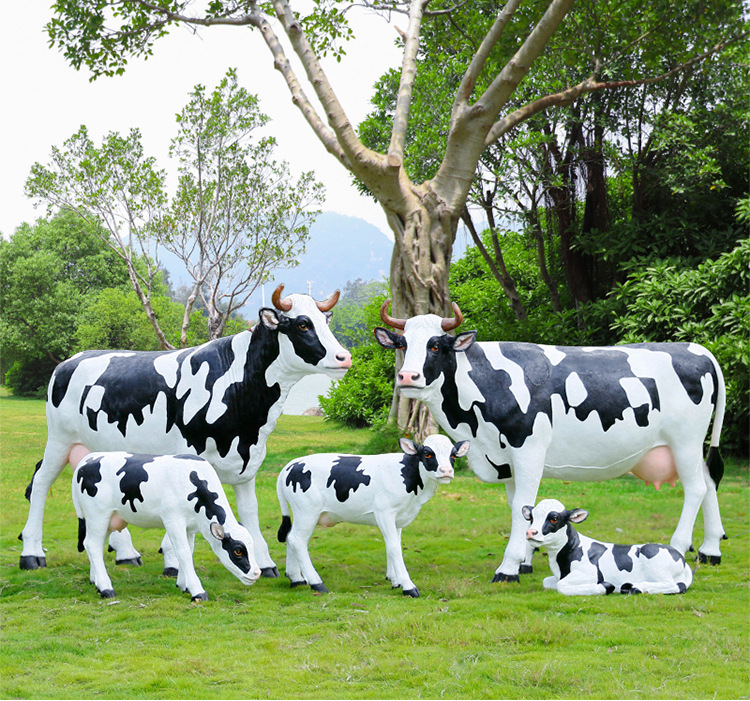 야외 정원 시뮬레이션 암소 장식품 대형 FRP 동물 소 조각 안뜰 농장 목장 잔디 장식