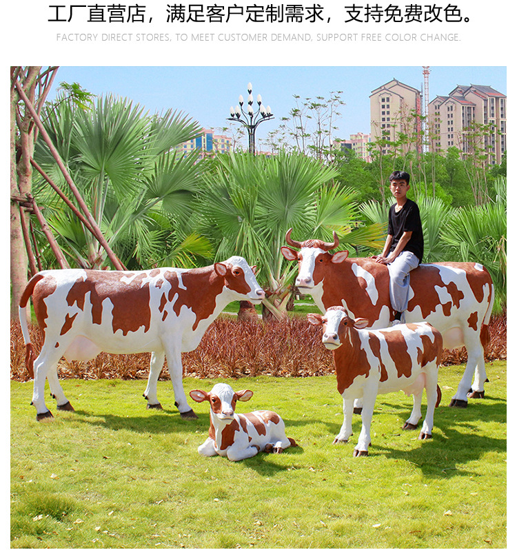 야외 정원 시뮬레이션 암소 장식품 대형 FRP 동물 소 조각 안뜰 농장 목장 잔디 장식스토어 가기