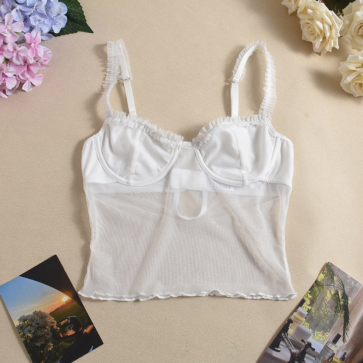 유럽과 미국의 대외 무역 국경 간 여성의 표범 무늬 서스펜더 메쉬 레이스 강철 링 바디 쉐이핑 섹시한 튜브 탑 백리스 시스루 조끼스토어 가기