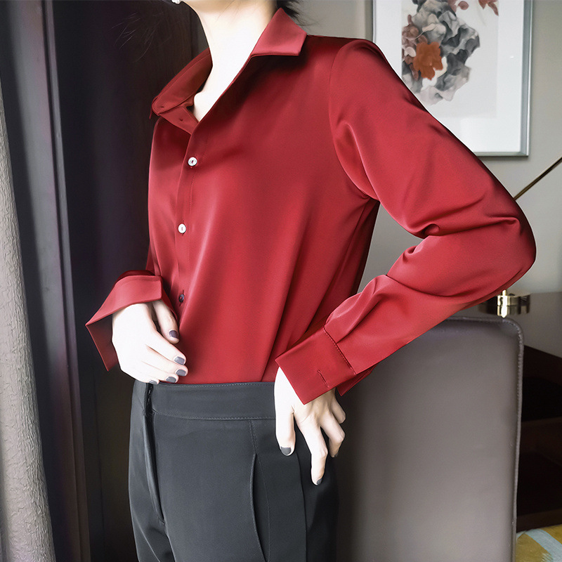 Gutige 고급 기질 다용도 흰색 셔츠 여성 여름 아세테이트 새틴 캐주얼 전문스토어 가기