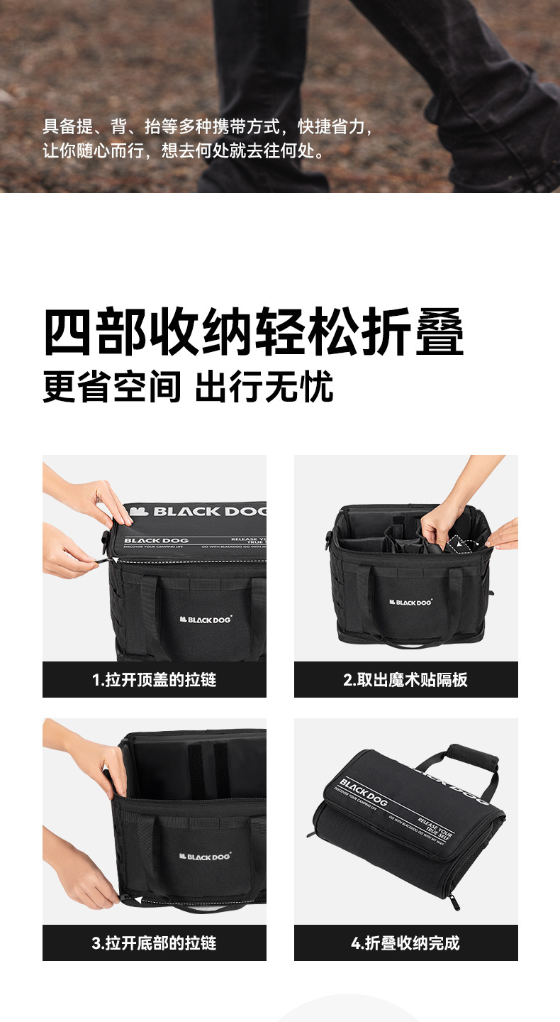 Blackdog 야외 캠핑 장비 보관 가방 대용량 검정색 강화 정리 상자 접이식 잡다한 가방스토어 가기