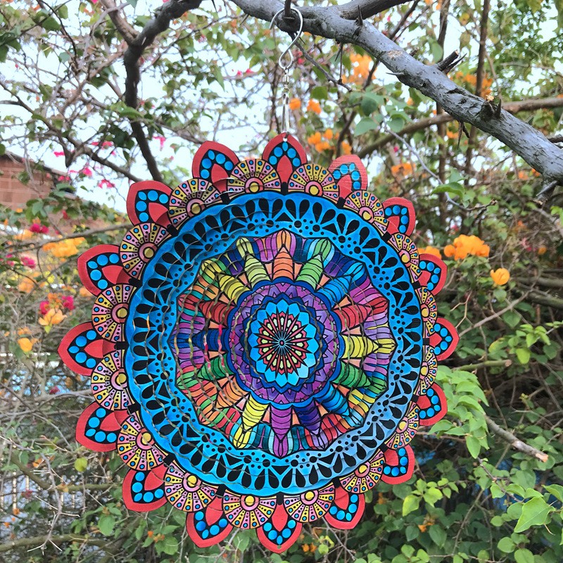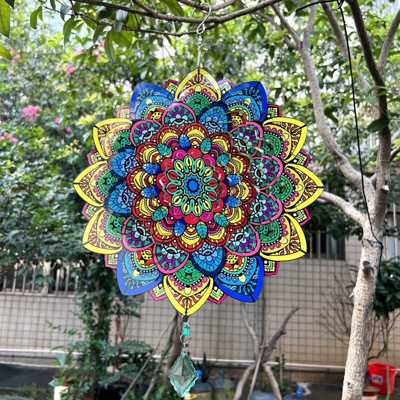 크리 에이 티브 아트 3D 회전 만다라 바람 차임 창조적 인 실내 야외 북유럽 정원 장식 펜던트 선 바람 터닝 펜던트