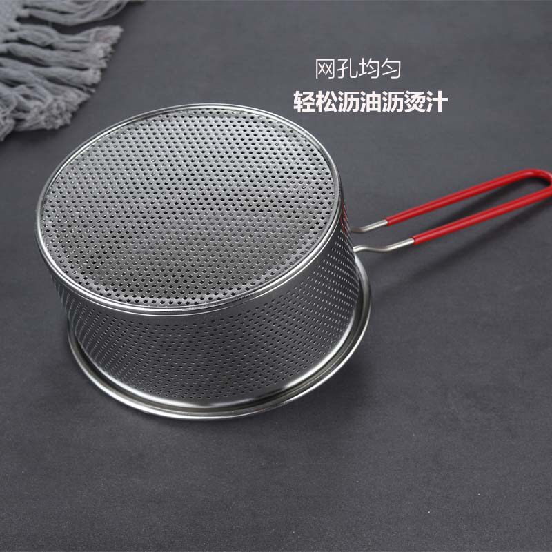 도매 304 스테인레스 스틸 프라이팬 프라이어 프라이팬 바구니 펀칭 소쿠리 스트레이너 스푼 요리 국수 그물 쌀 국수 가루 울타리 기름스토어 가기