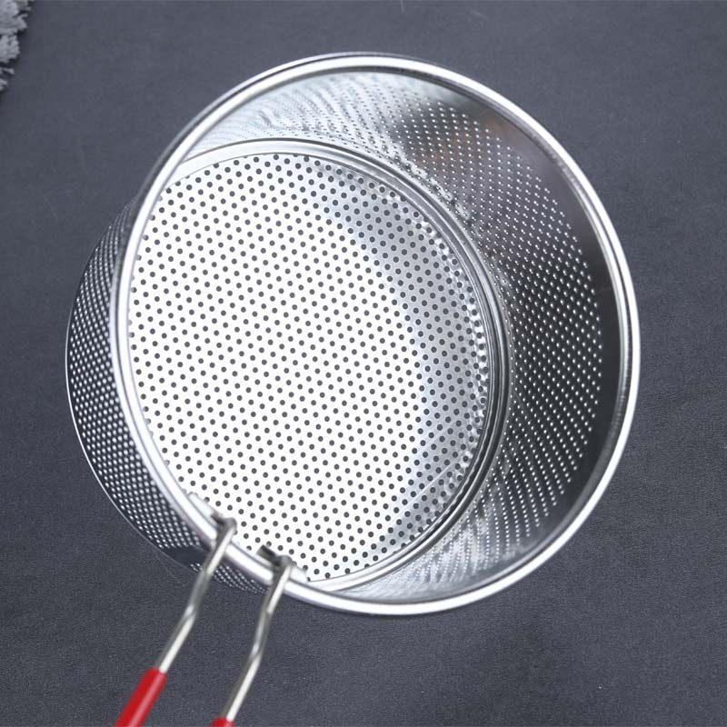 도매 304 스테인레스 스틸 프라이팬 프라이어 프라이팬 바구니 펀칭 소쿠리 스트레이너 스푼 요리 국수 그물 쌀 국수 가루 울타리 기름