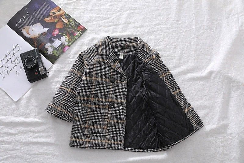 2025 어린이 영국식 코트 보이즈 중장 서양식 티트 코트 클래식 격자 무늬 더블 브레스트 윈드 브레이커스토어 가기