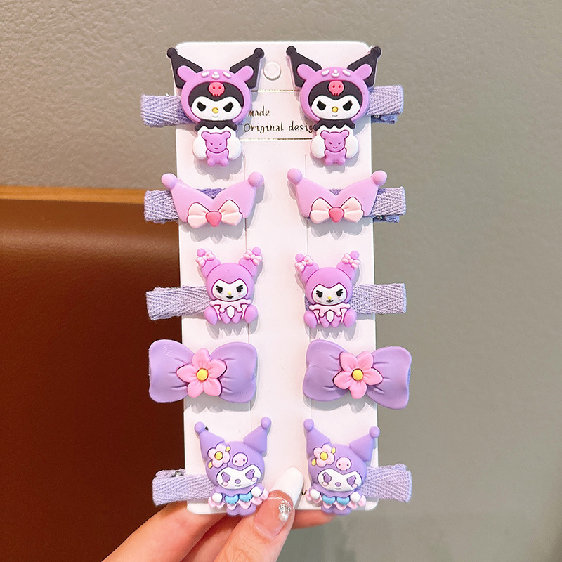 Kulomi 어린이 머리핀 10 피스 세트 풀 백 천 헤어 카드 아기 귀여운 만화 쌍 클립 앞머리 클립