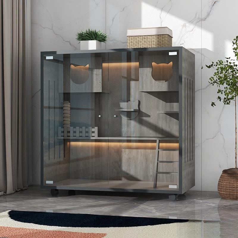 가벼운 고급 단단한 나무 고양이 빌라 고양이 둥지 고양이 케이지 고양이 집 럭셔리 슈퍼 대형 파노라마 고양이 집 고양이 케이지 고양이 캐비닛 실내