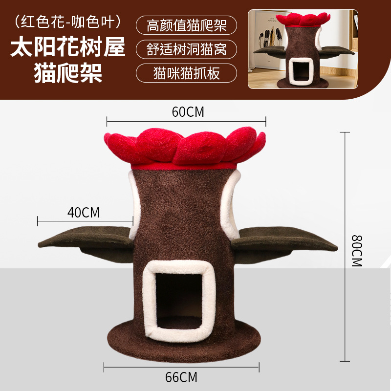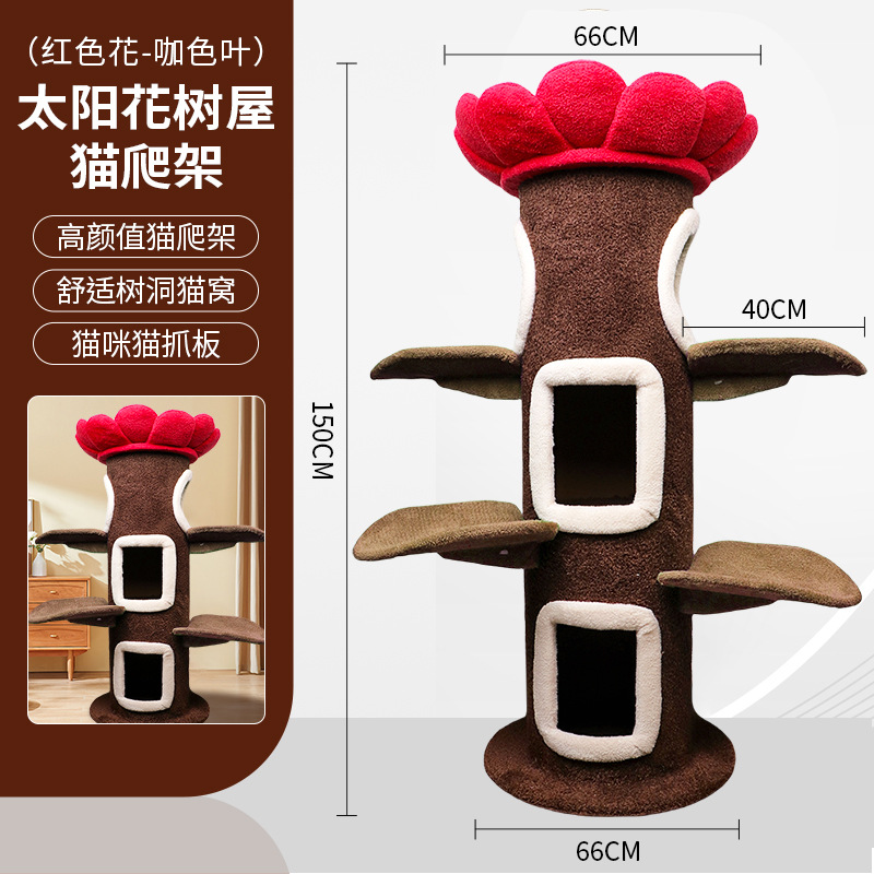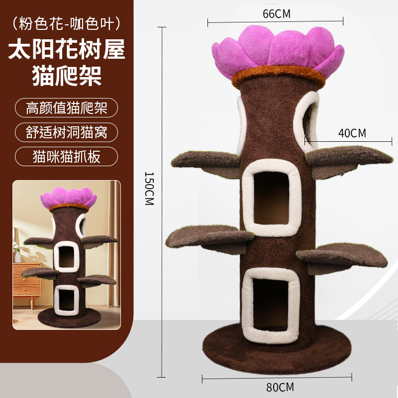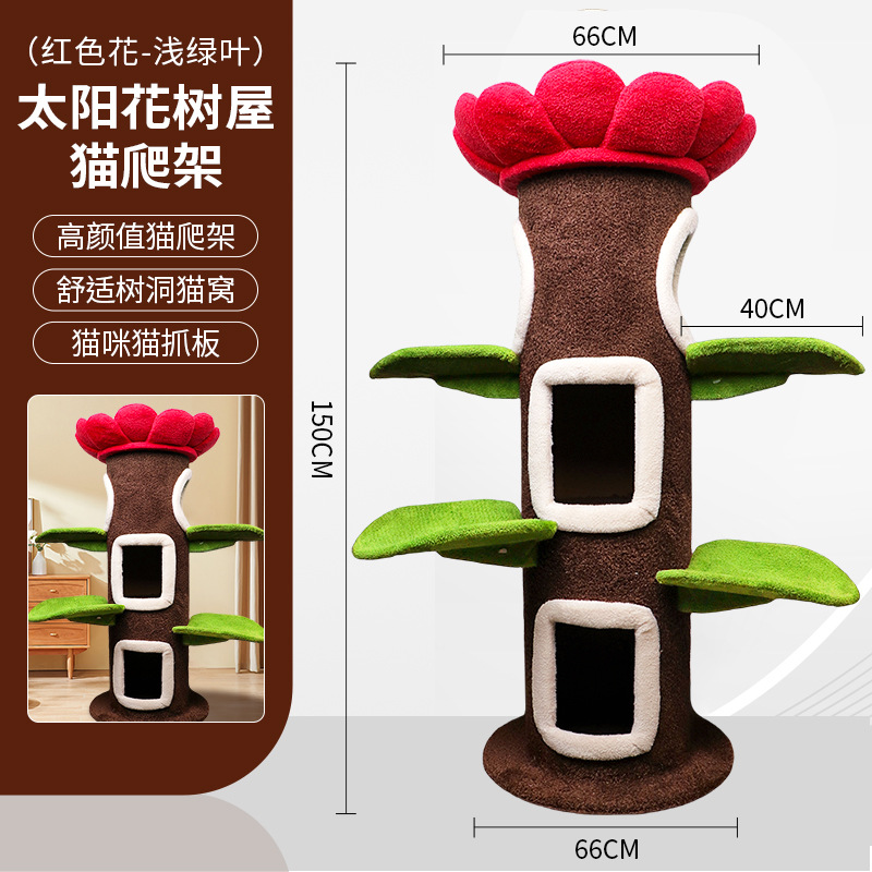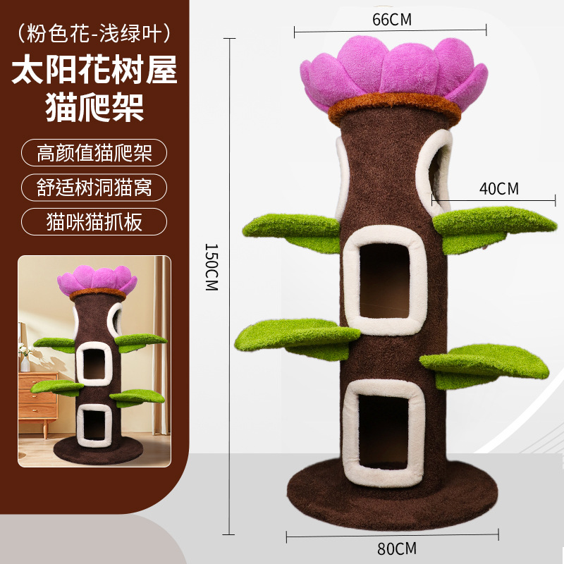 다색 해바라기 고양이 클라이밍 프레임, 캣타워, 캣스크래치보드, 일체형 고양이둥지, 고양이성, 공장직영