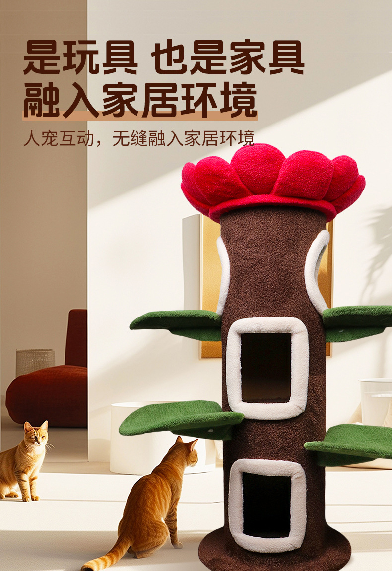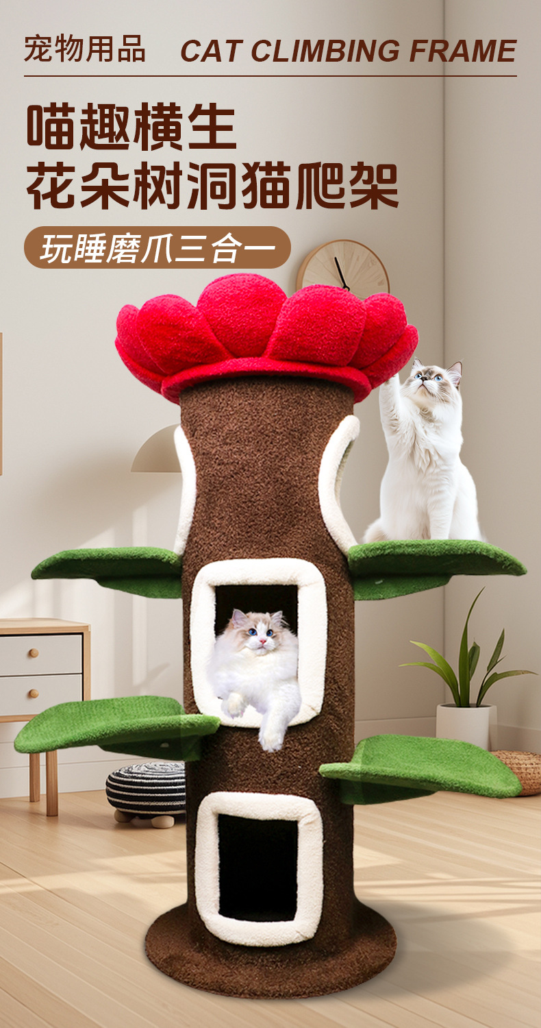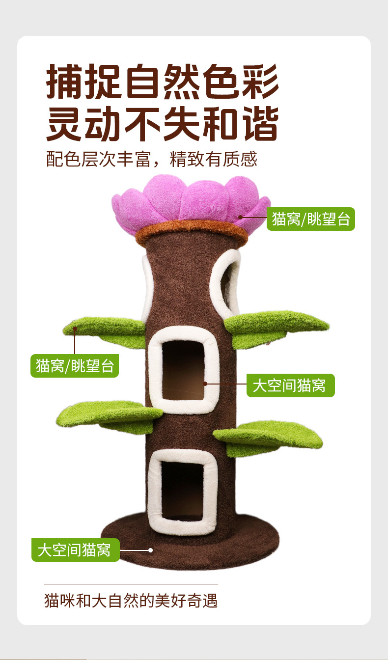 다색 해바라기 고양이 클라이밍 프레임, 캣타워, 캣스크래치보드, 일체형 고양이둥지, 고양이성, 공장직영