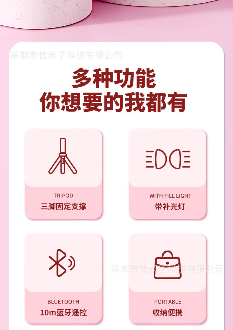 • Z16s 핑크 1.75m 합금 킹콩 스탠드 + 다기능 블루투스 리모컨 + 단일 조명