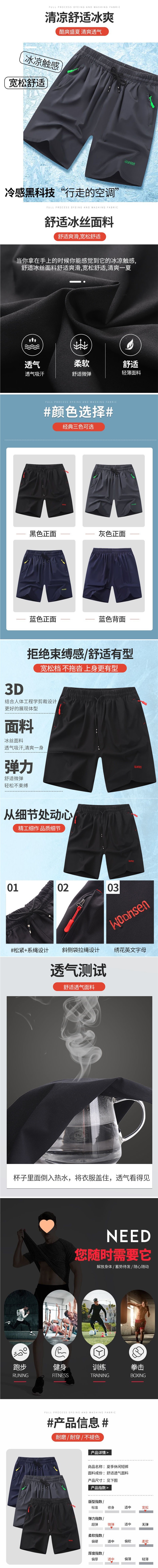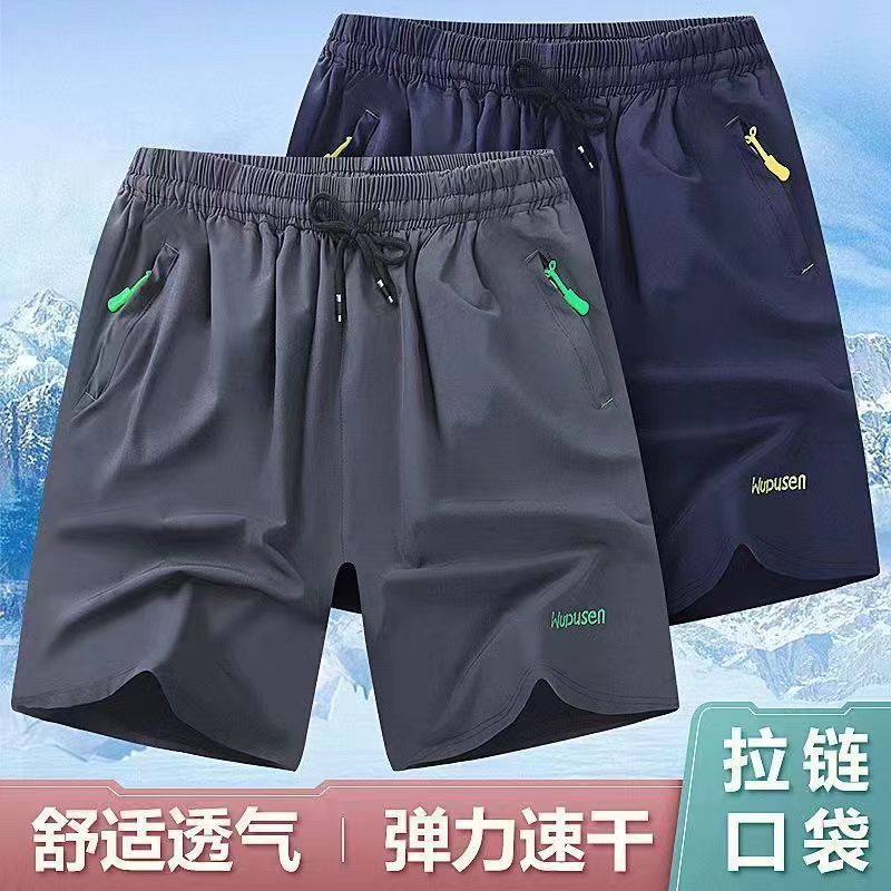 여름 스포츠 5점 아이스 실크 반바지 남성용 루즈 캐주얼 대형 얇은 5점 중간 바지 속건성 통기성 비치 바지스토어 가기