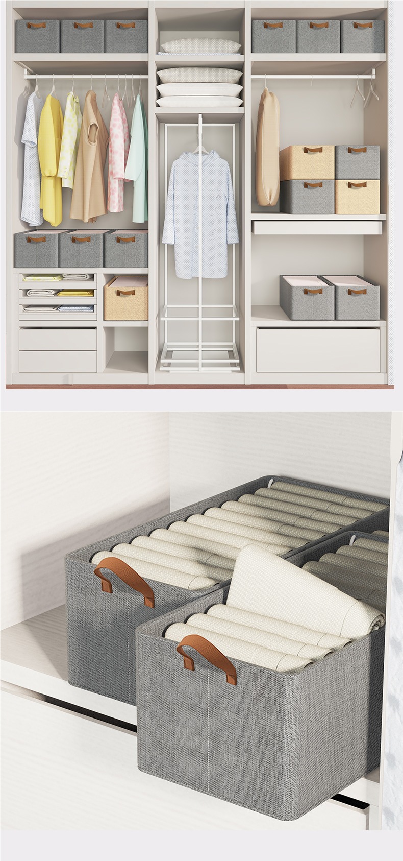 강철 프레임 의류 보관 상자 대형 면 및 린넨 서랍 바지 보관 상자 보관 상자 옷장 정리 상자 가정용 대형스토어 가기