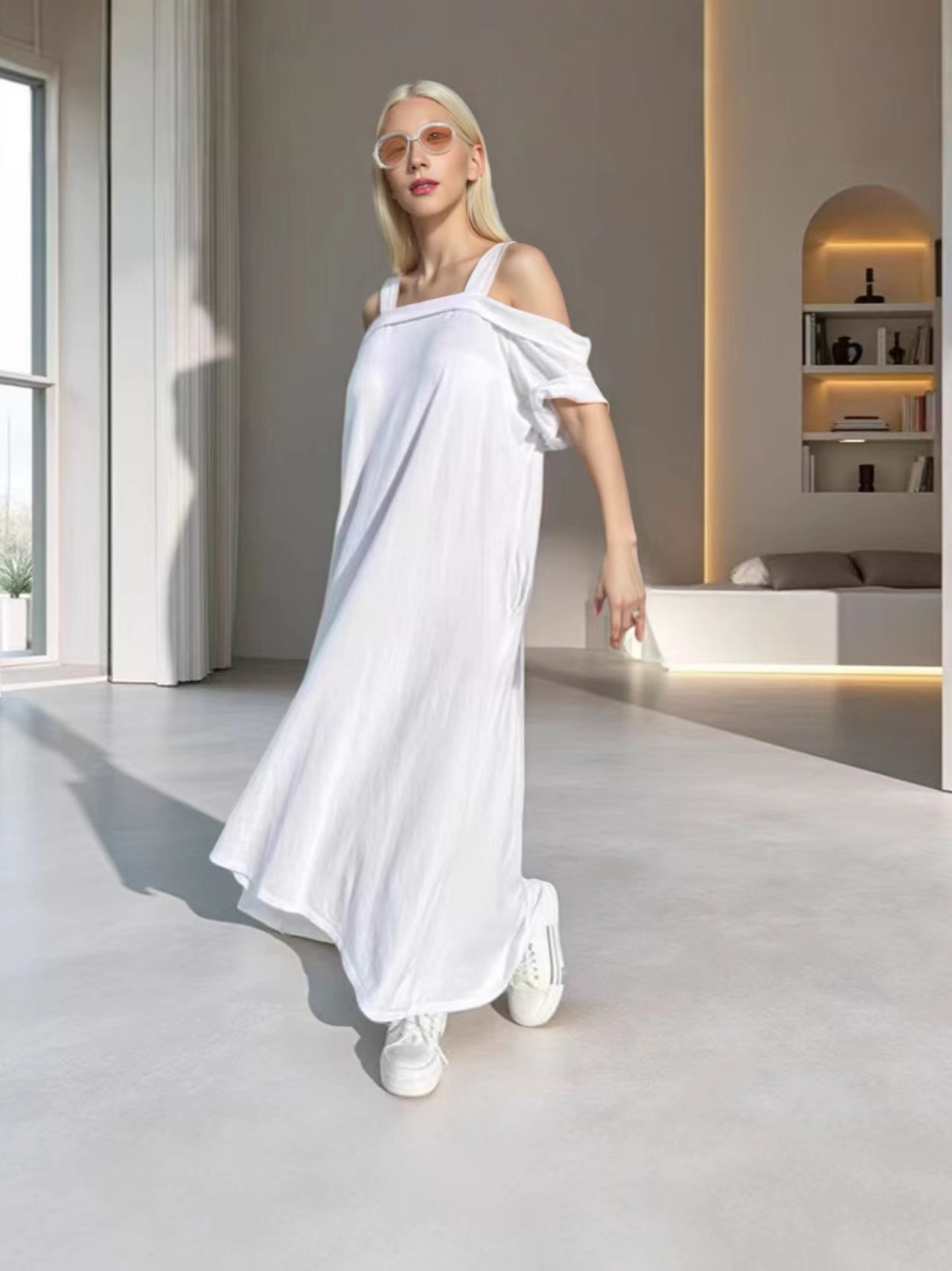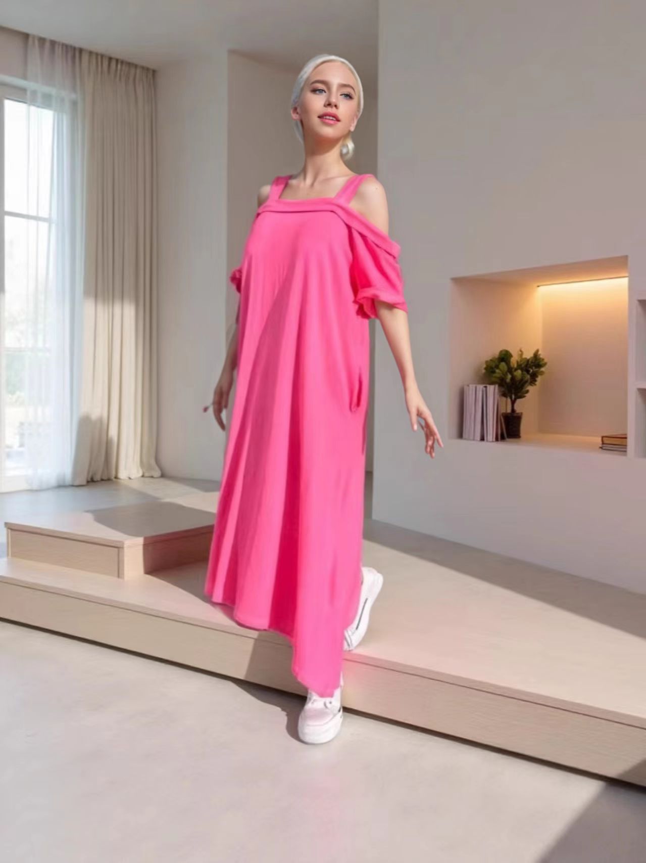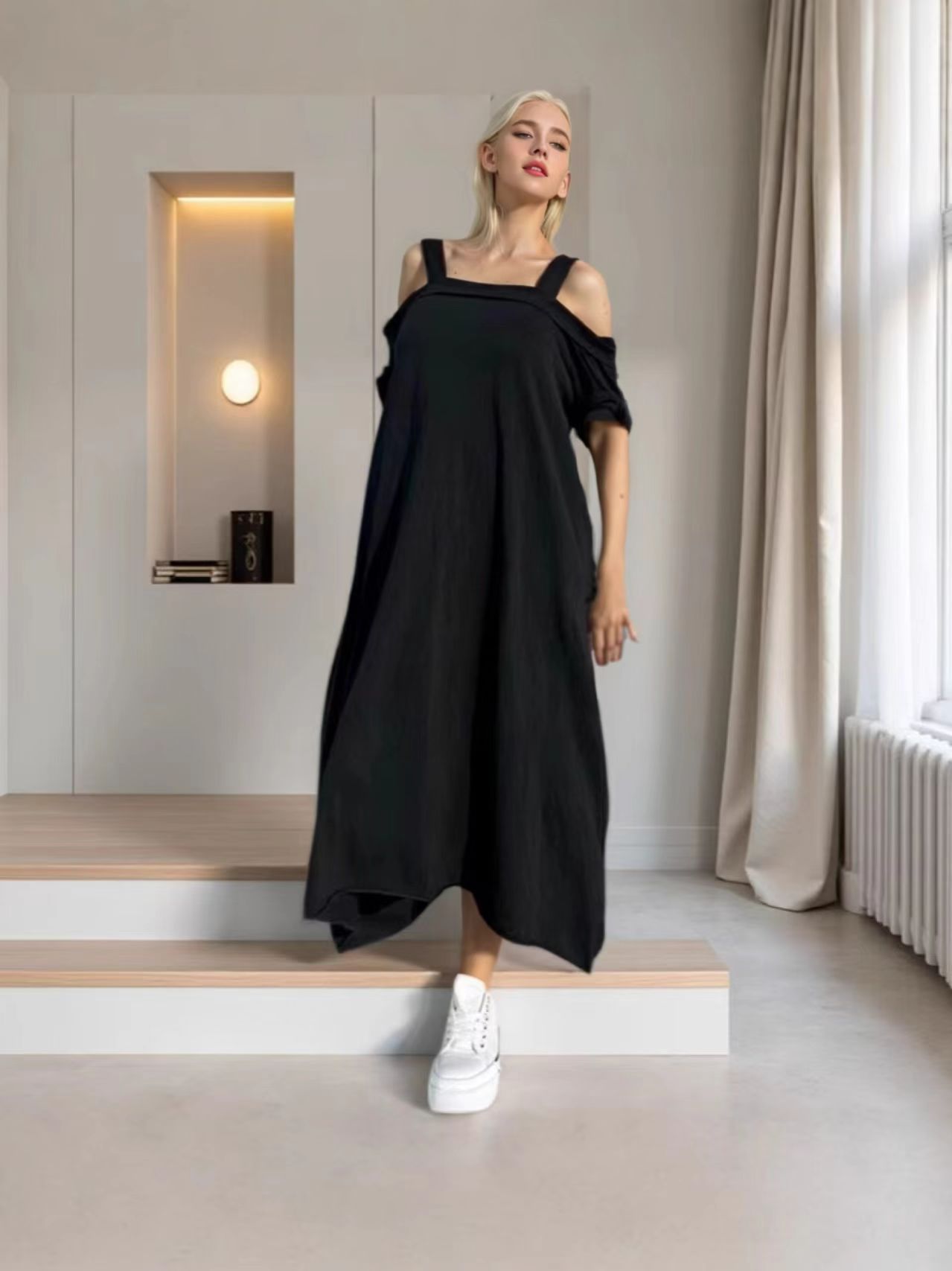국경 2025 년 여름 유럽과 미국의 면화 U 칼라 슬링 느슨한 원피스 아마존 폭발 플러스 사이즈 원피스 도매스토어 가기