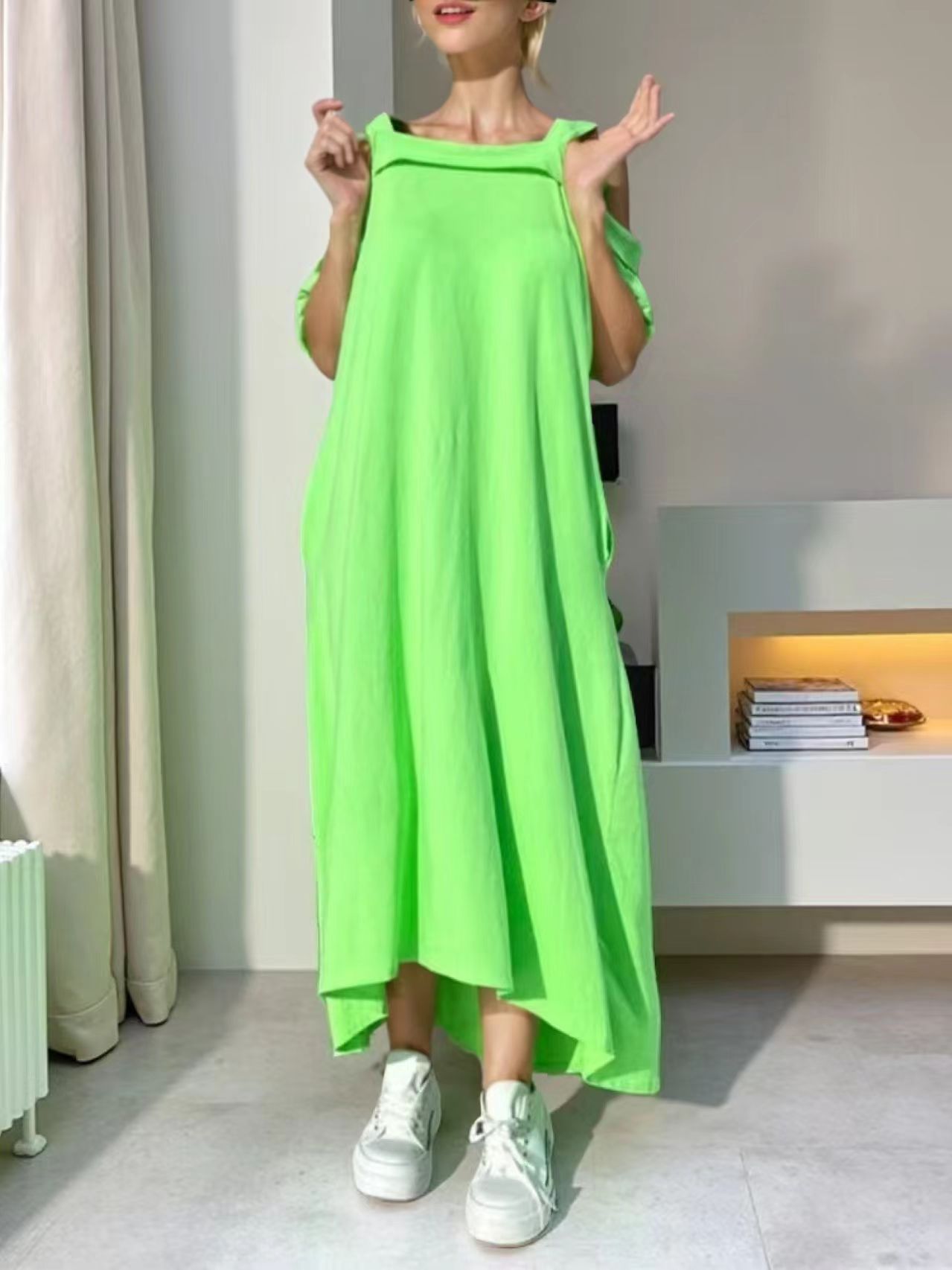 국경 2025 년 여름 유럽과 미국의 면화 U 칼라 슬링 느슨한 원피스 아마존 폭발 플러스 사이즈 원피스 도매