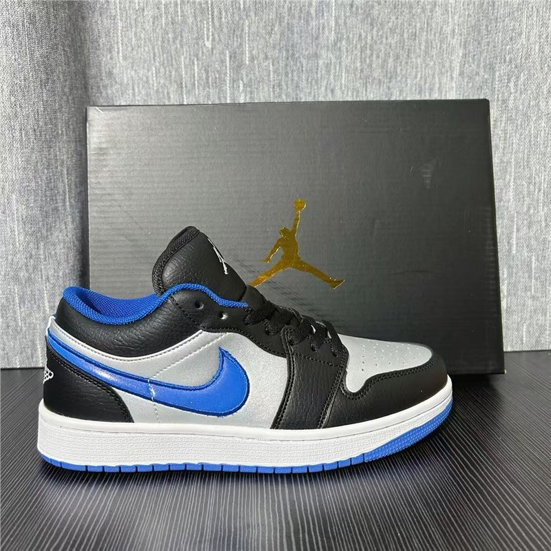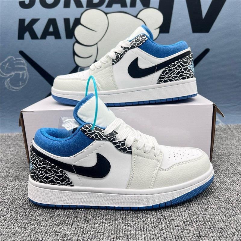 순수 오리지널 AJ1 화이트 블랙 블루 발가락 로우 컷 트렌디 농구화 캠퍼스 남성과 여성 다목적 캐주얼 스포츠 스케이트 보드 신발