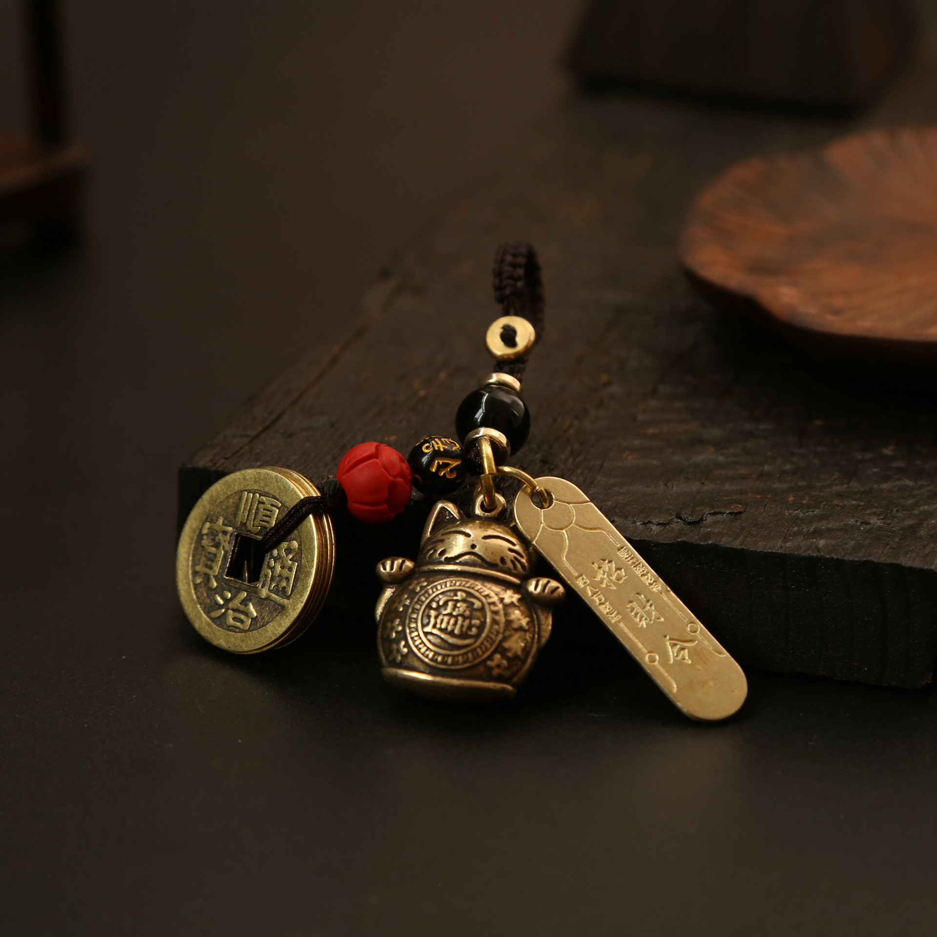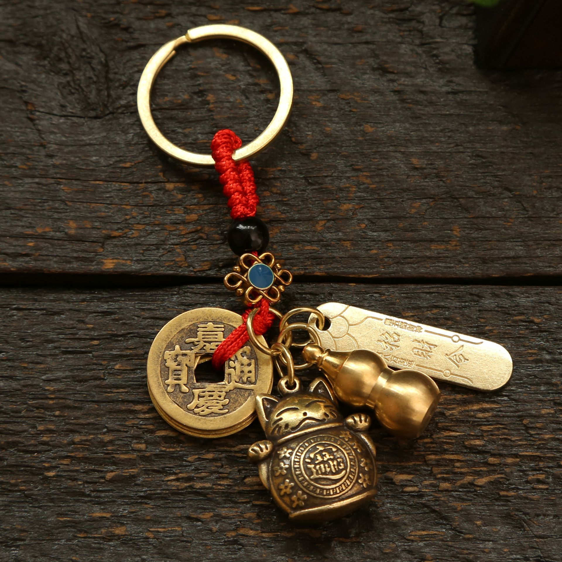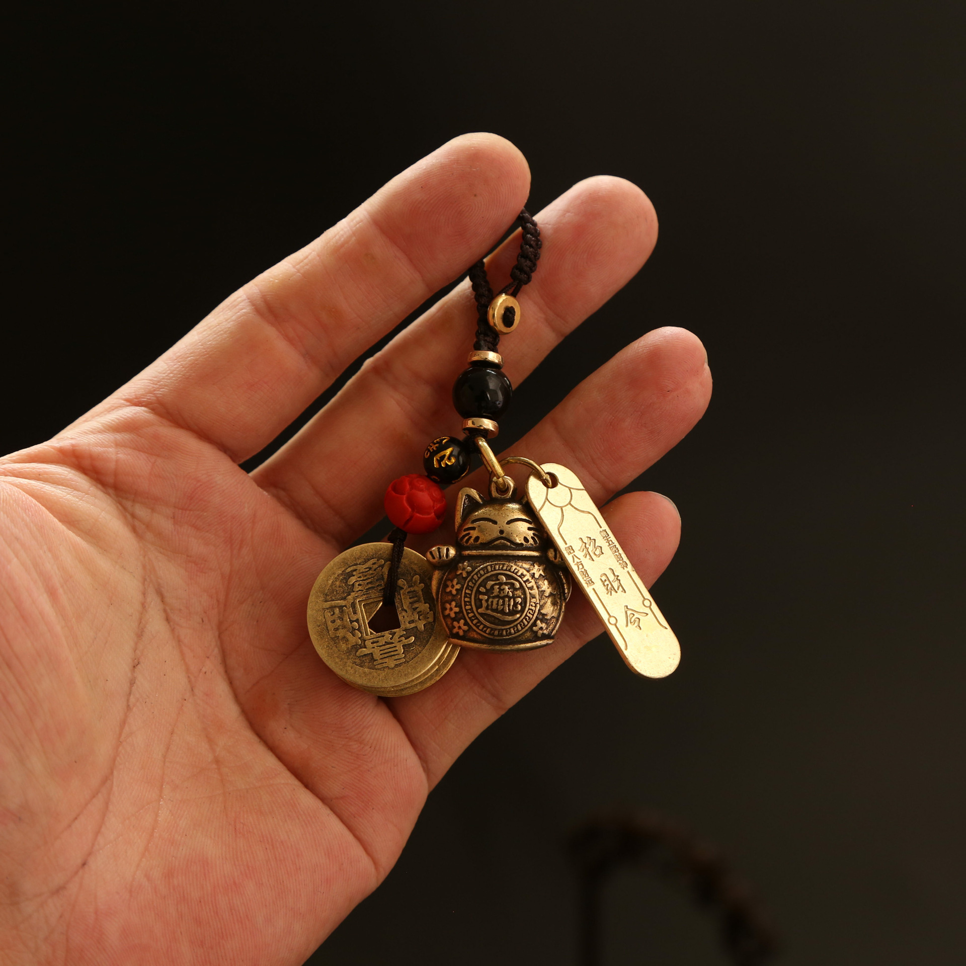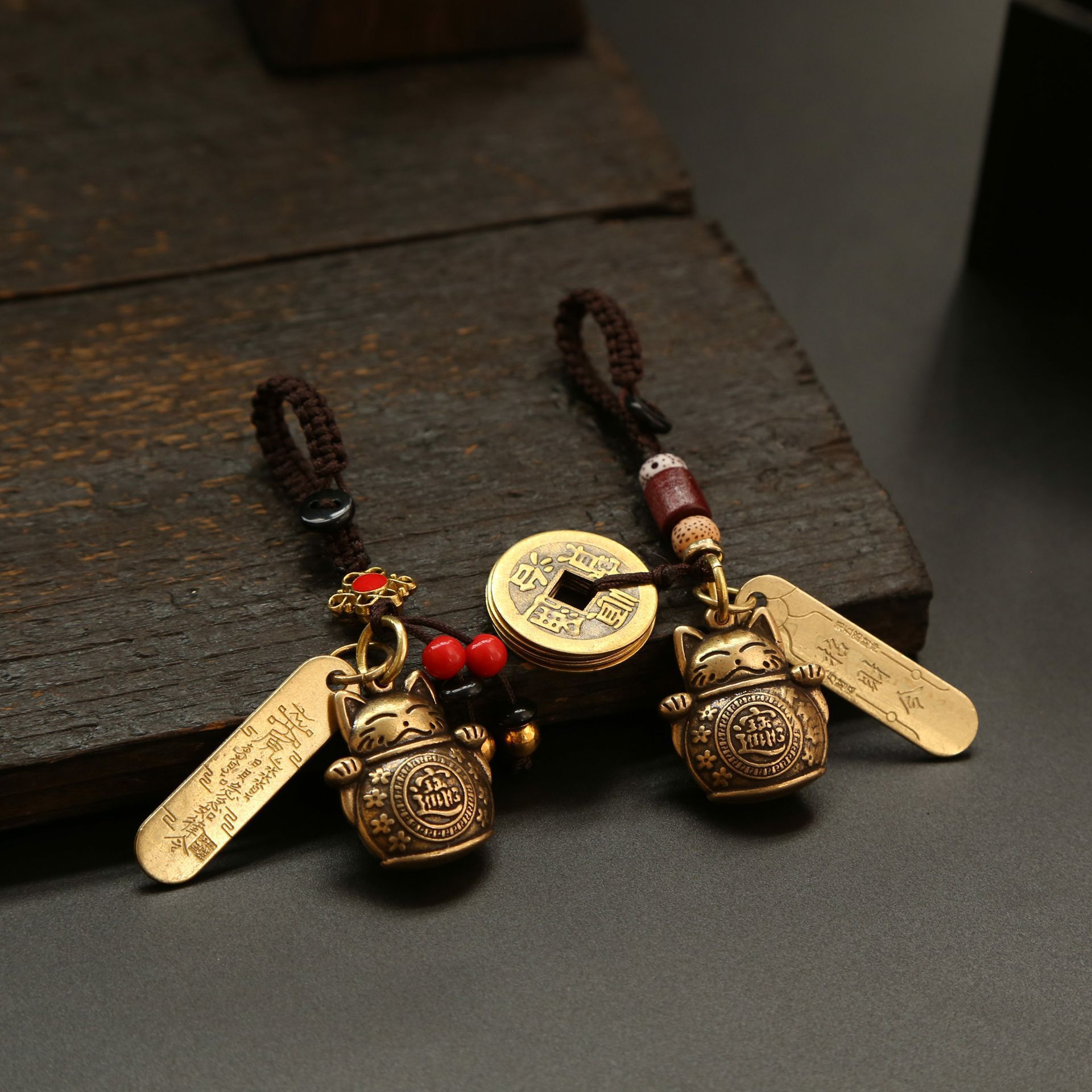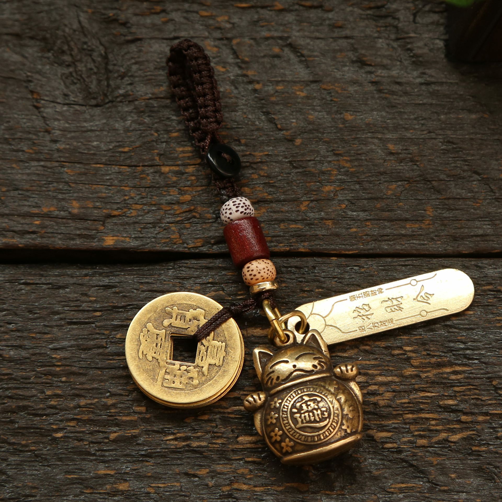 황동 행운의 고양이, 다섯 황제의 돈 열쇠고리 펜던트, 야시장 매점, 명승지 가방 펜던트