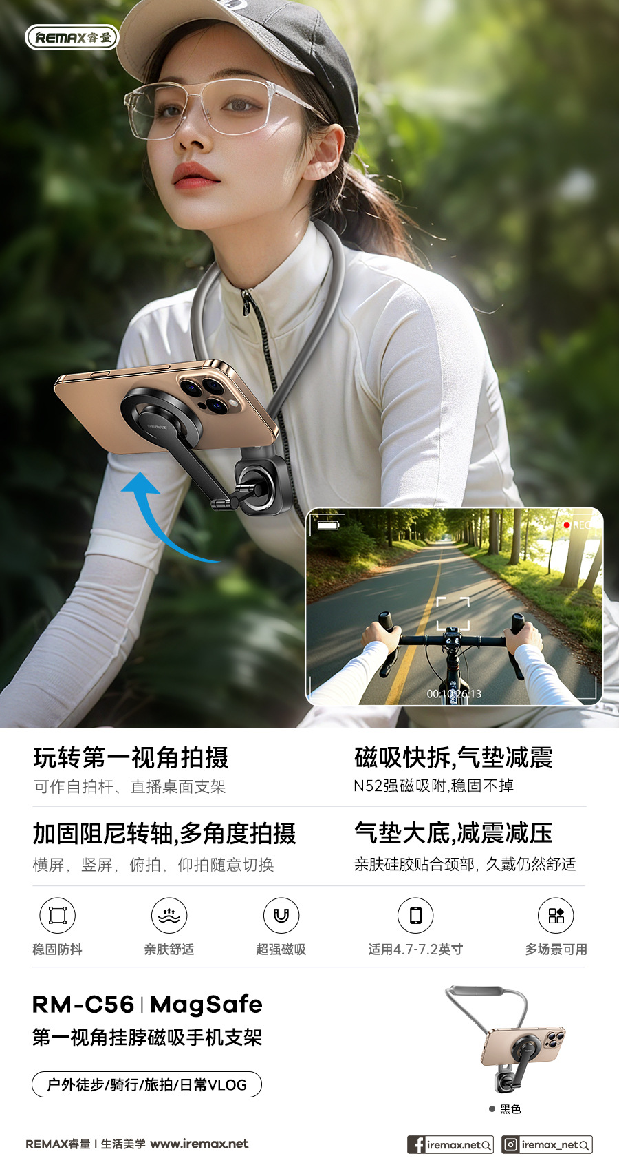 REMAX 강한 자기 MagSafe 휴대 전화 교수형 목 브래킷 1 인칭 관점 촬영 브래킷 휴대 전화 셀카 스틱스토어 가기