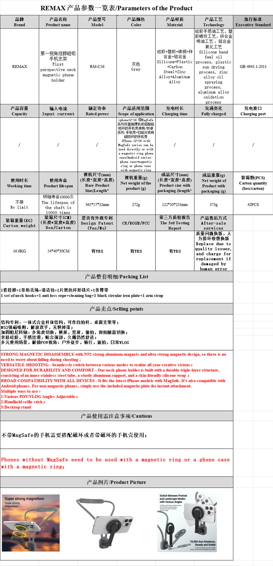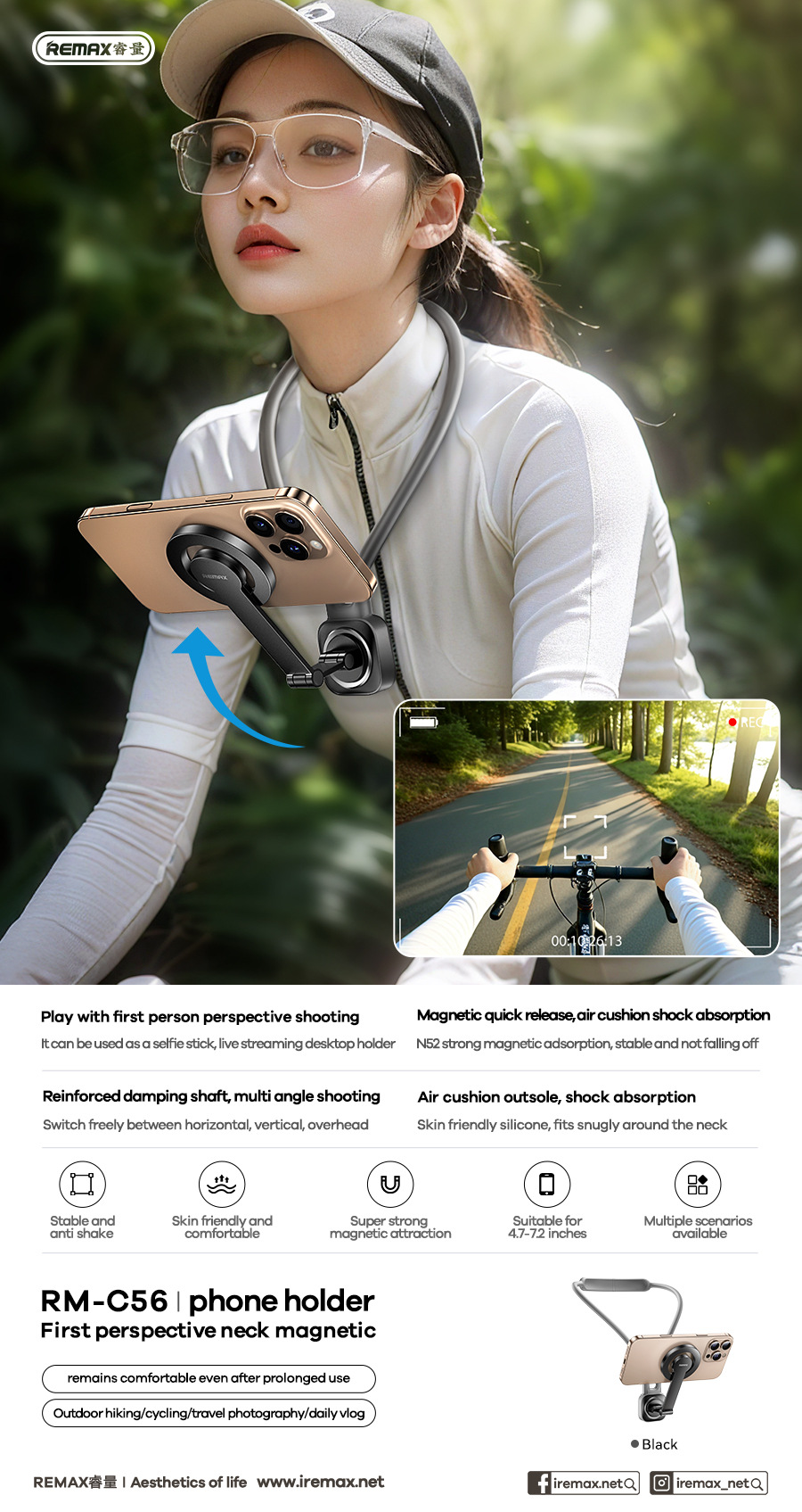 REMAX 강한 자기 MagSafe 휴대 전화 교수형 목 브래킷 1 인칭 관점 촬영 브래킷 휴대 전화 셀카 스틱
