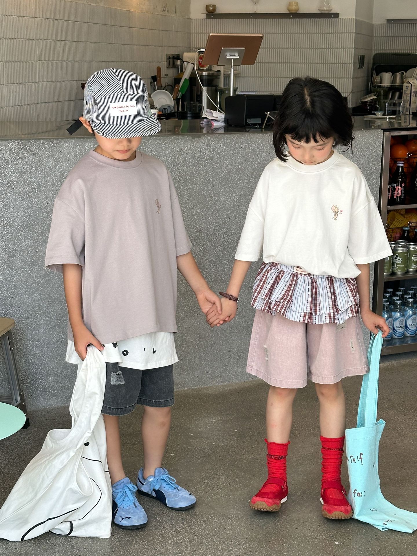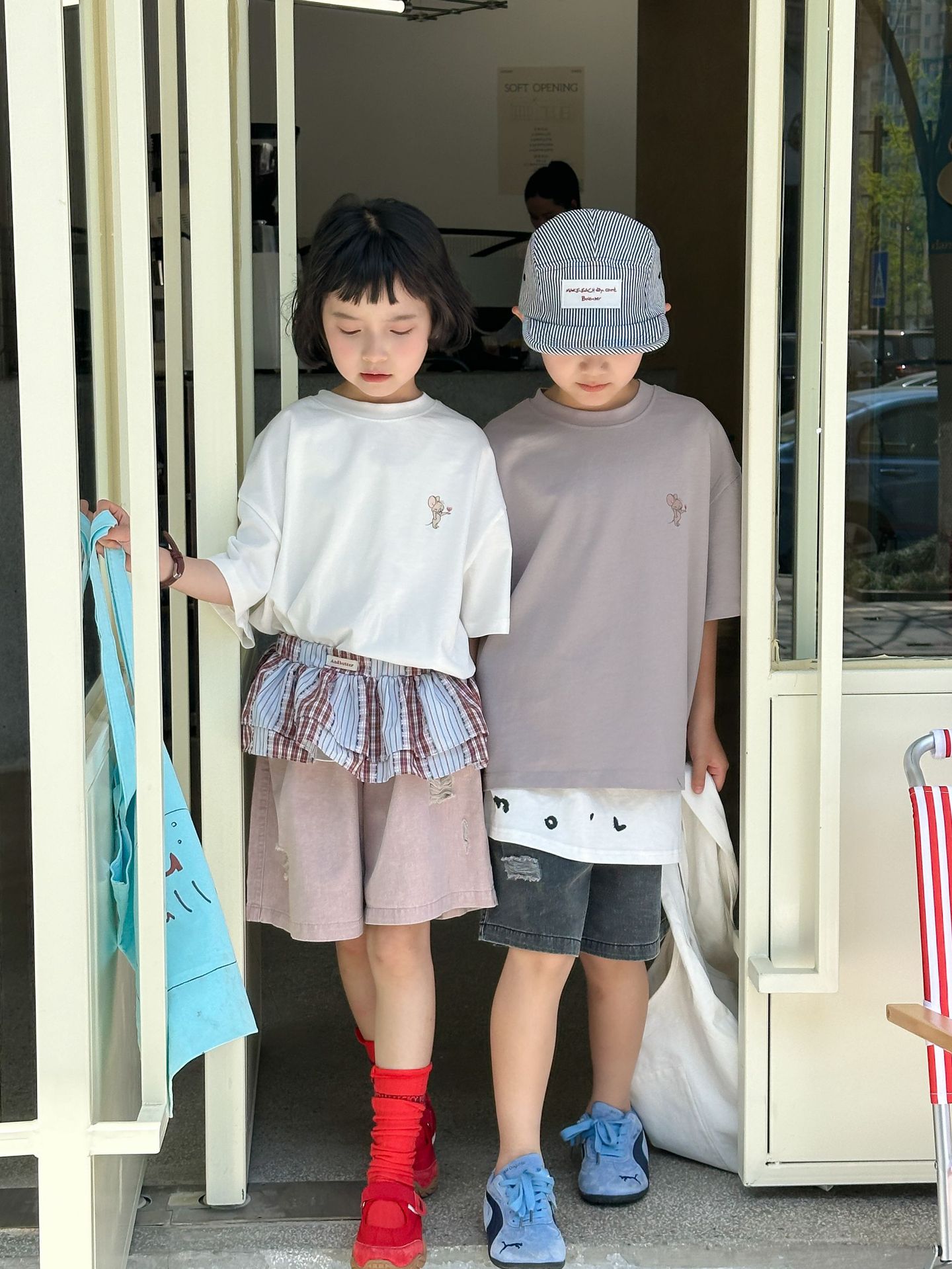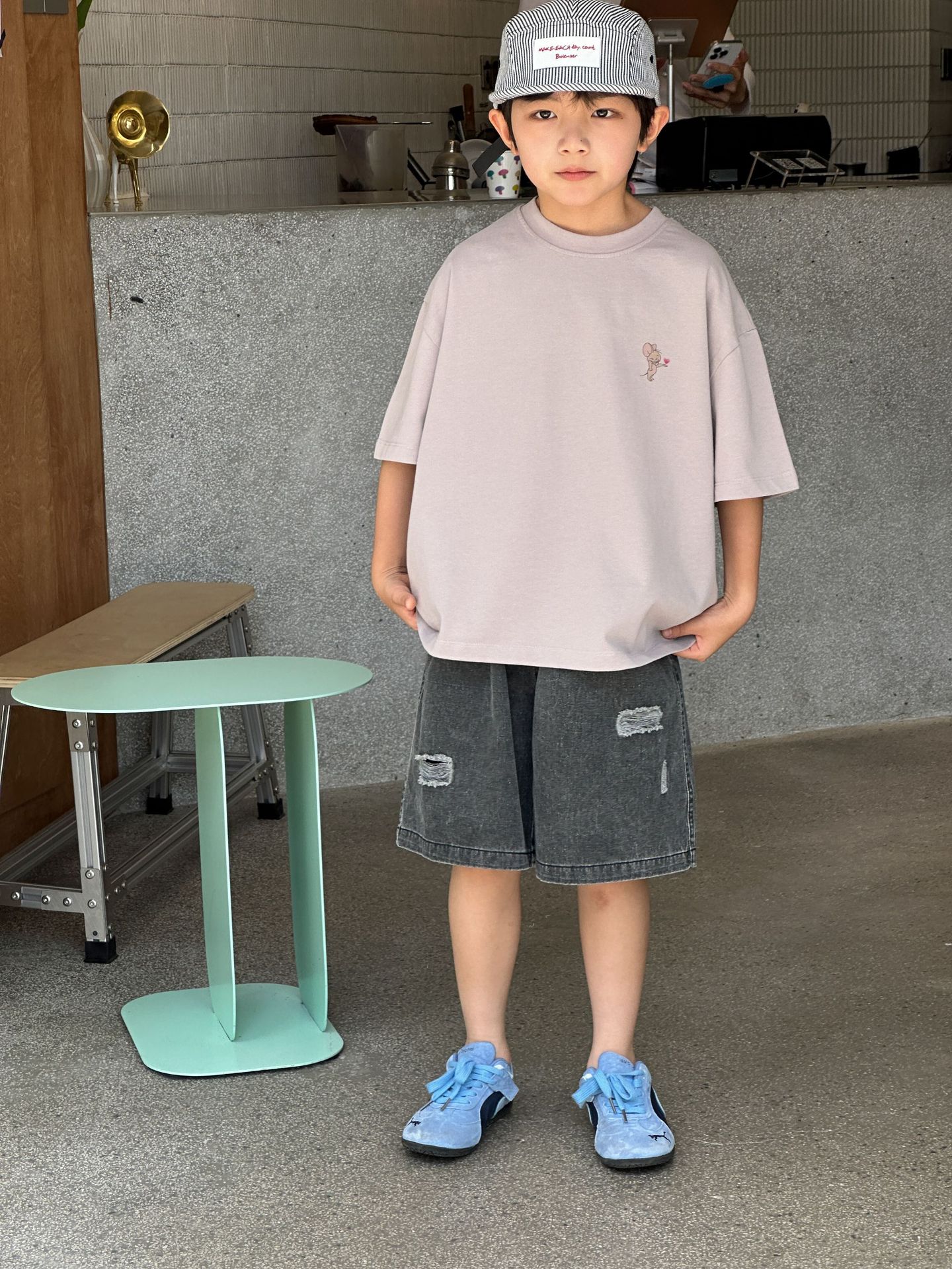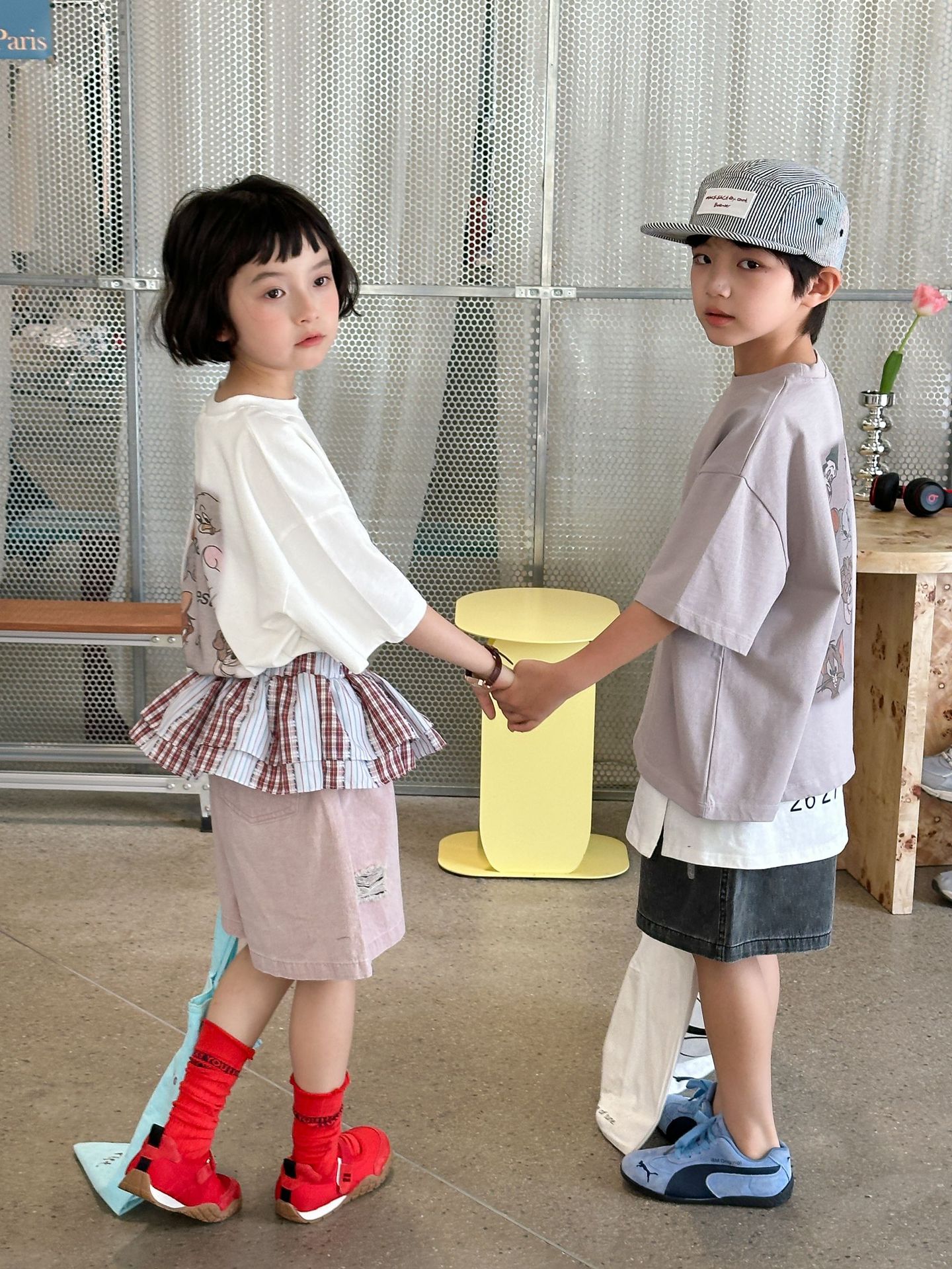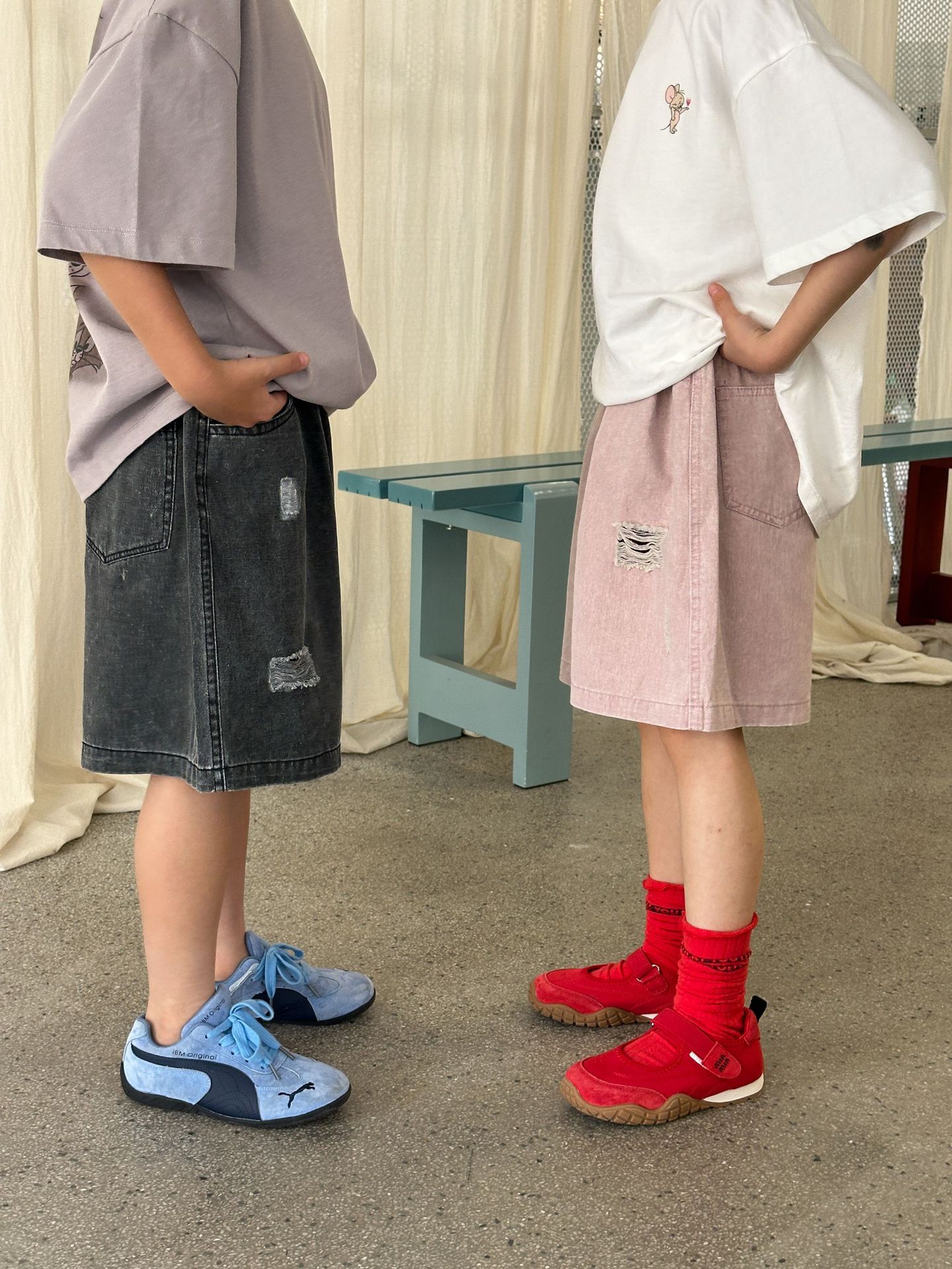 2025 년 여름 새 아동복 한국 스타일 어린이 워시 페이드 향수 구멍 반바지 소년 소녀를위한 유행 캐주얼 미드 팬츠스토어 가기