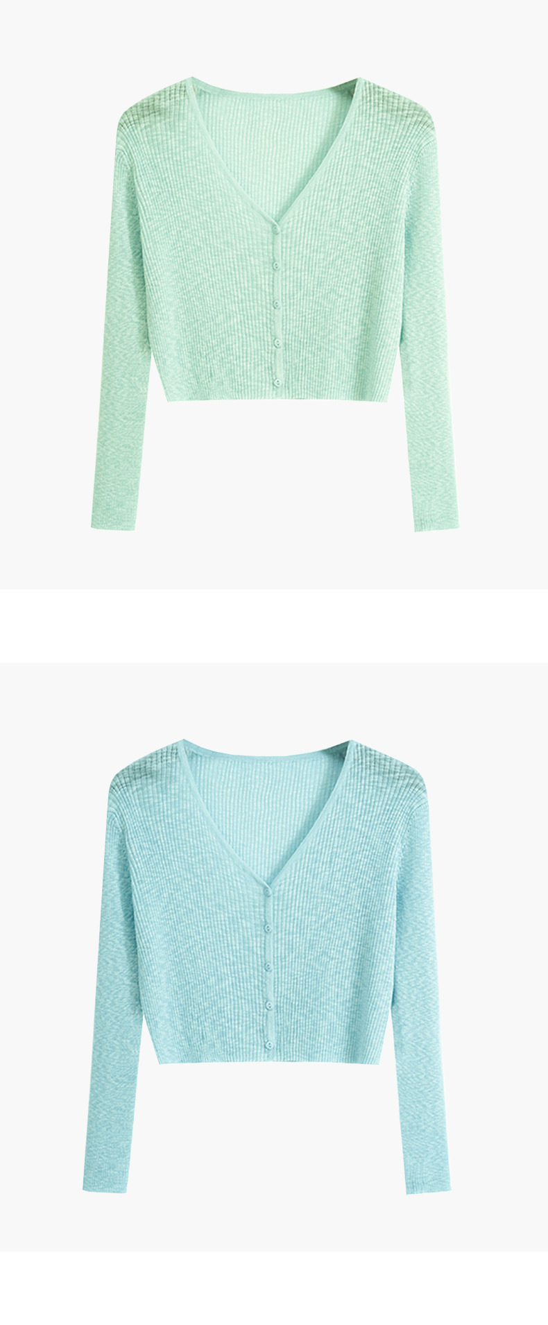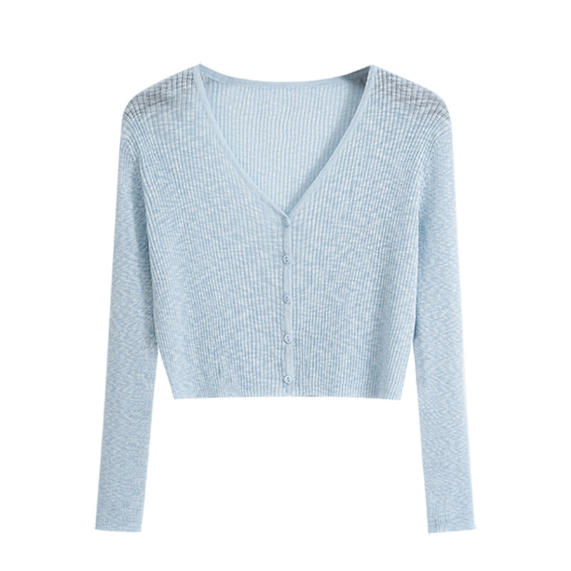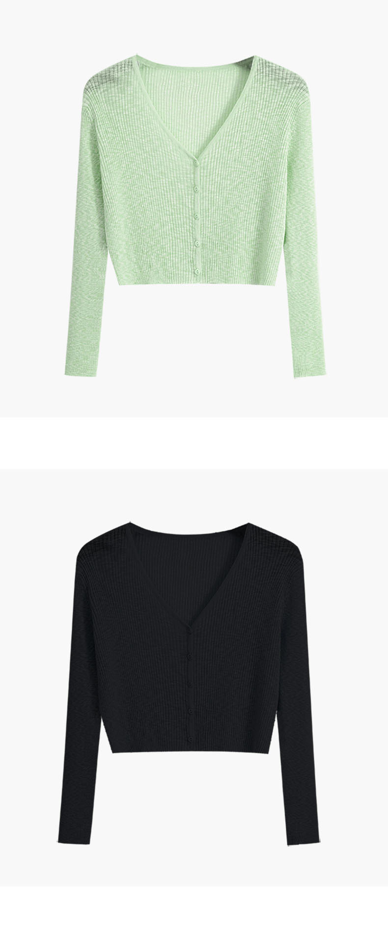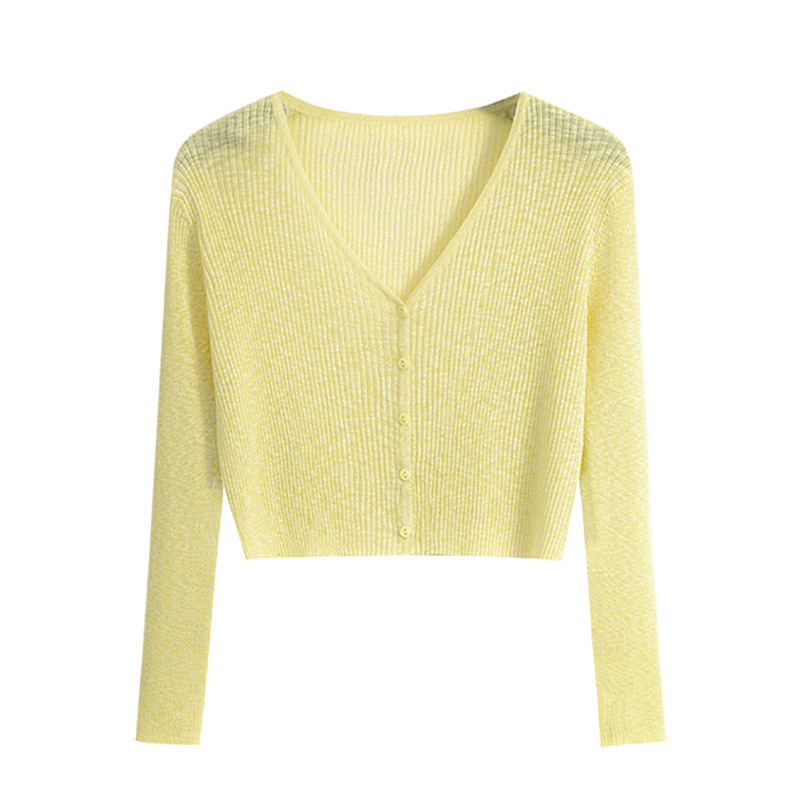 슬럽 대마 아이스 실크 니트 카디건 얇은 여성의 봄과 여름 선 스크린 블라우스 코트 V-Neck 아우터 쇼트 탑 작은 셔츠