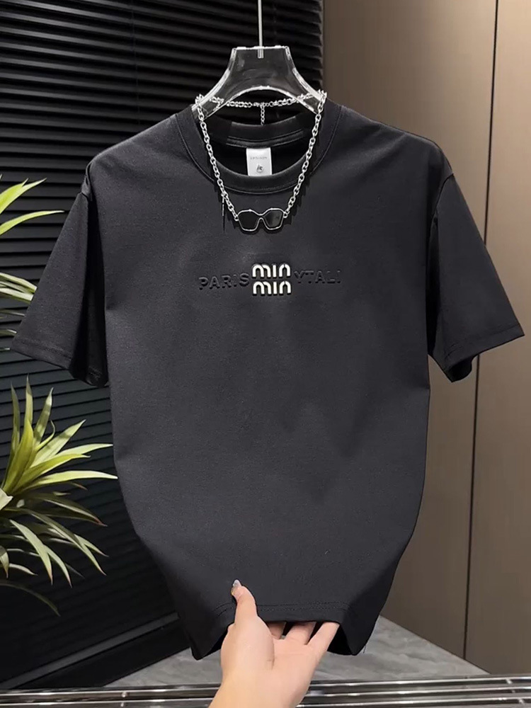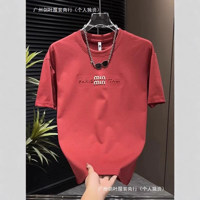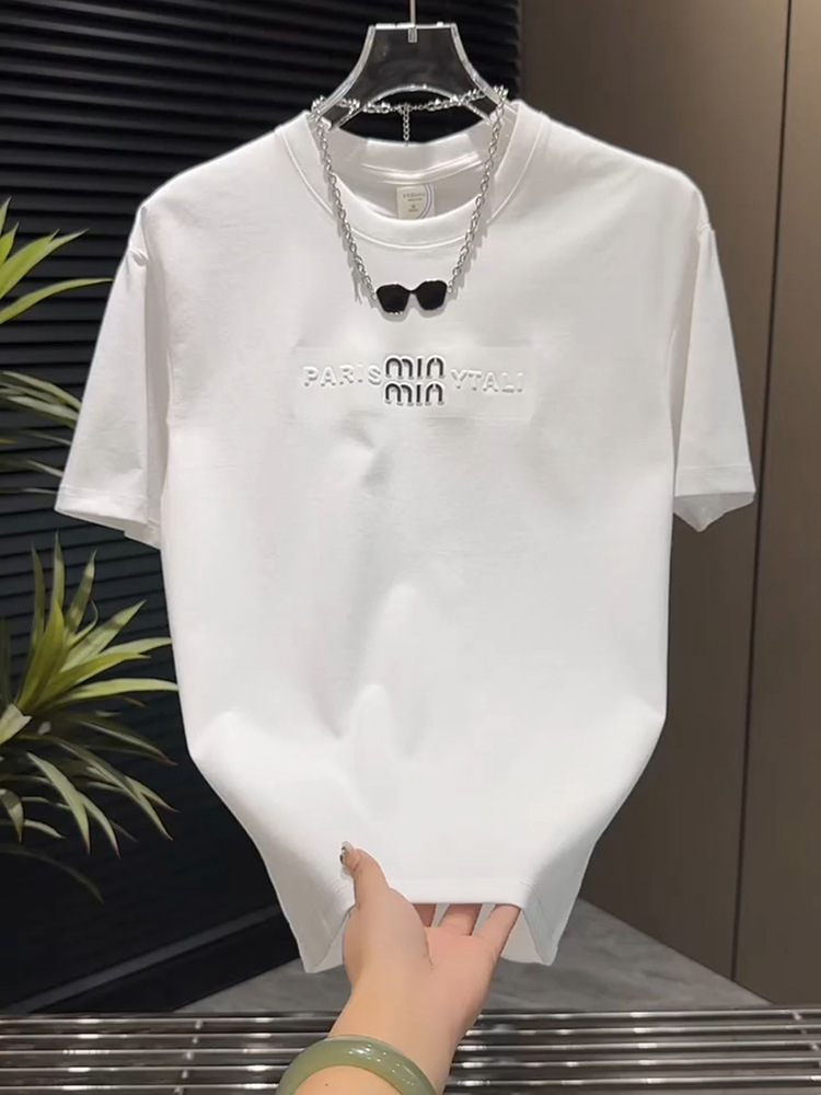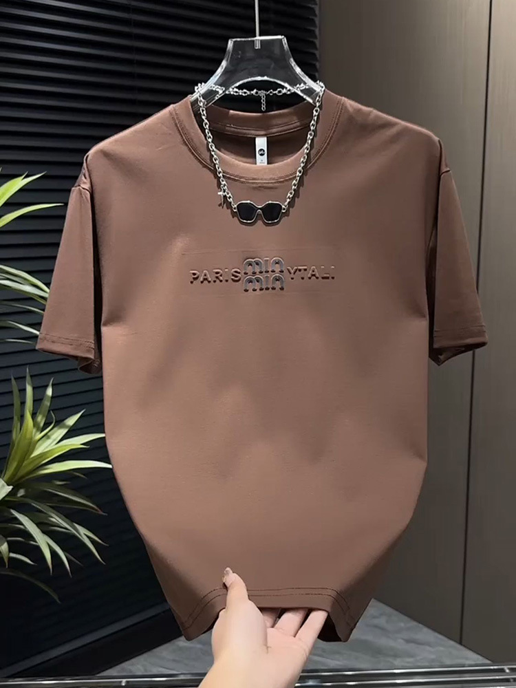 2025 여름 새로운 3 차원 편지 자수 남성 승무원 최고 패션 컬러 남성 풀오버 반팔 티셔츠