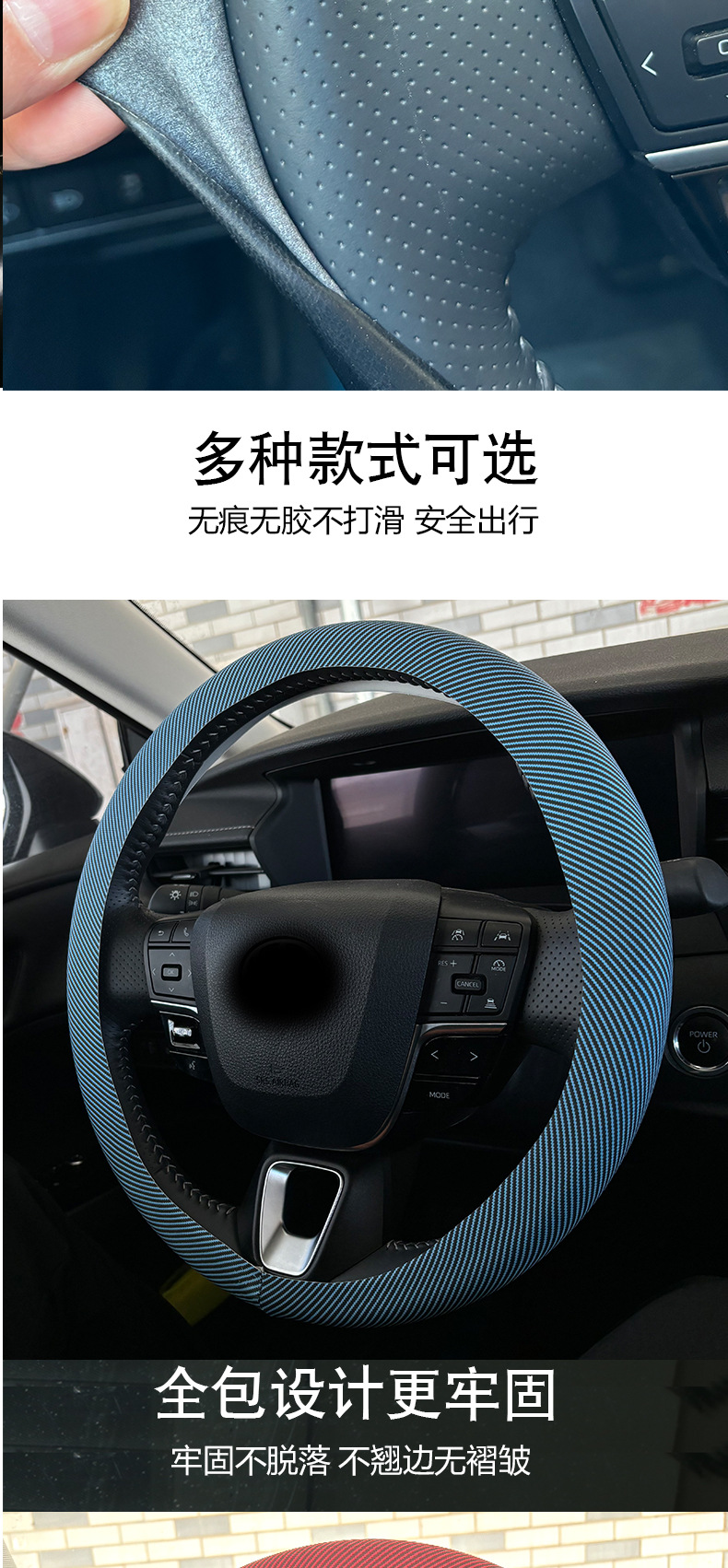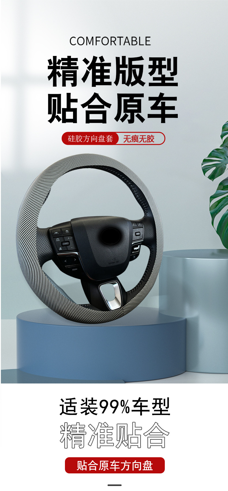자동차 스티어링 휠 커버 내부 링이없는 실리콘 탄소 섬유 스티어링 휠 커버 내부 링 탄성 스티어링 휠 커버 크로스 보더