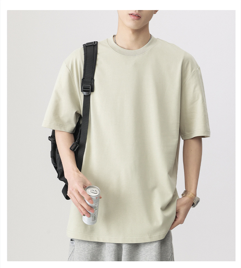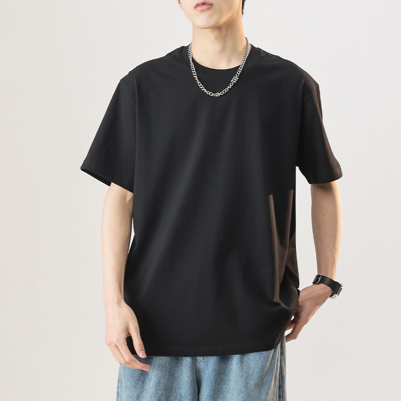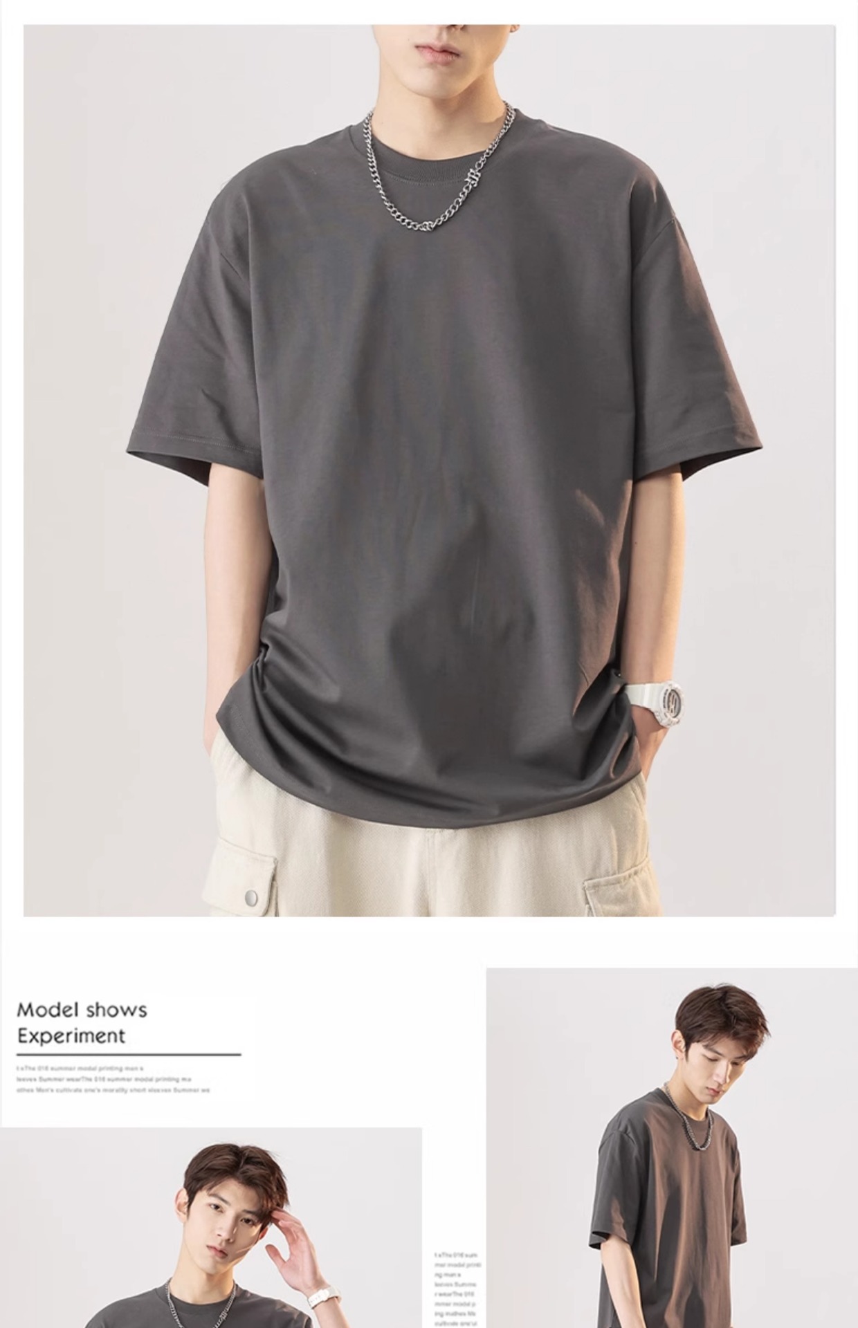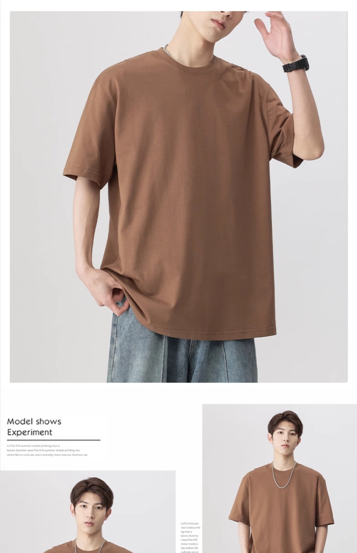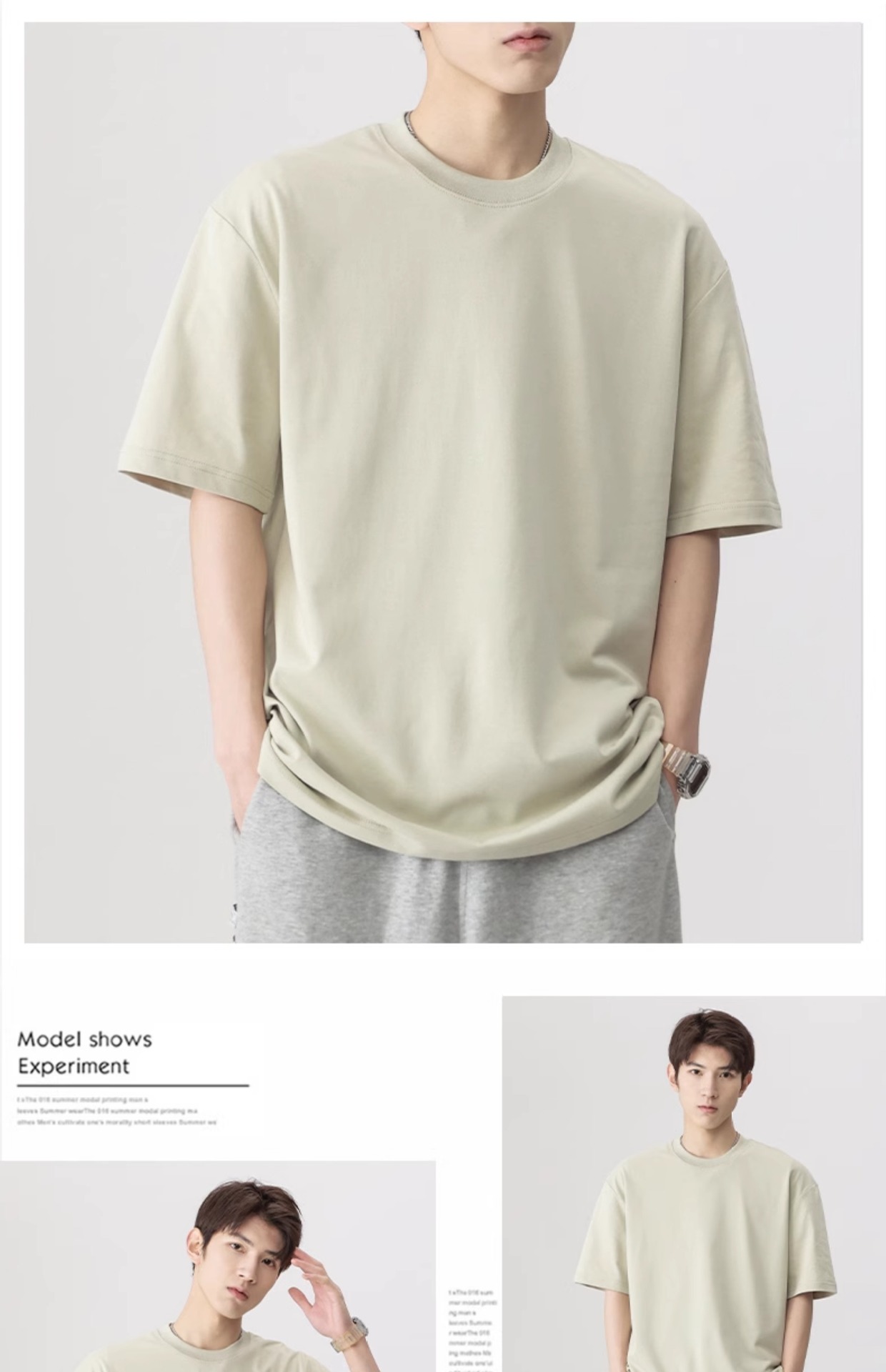도매 반팔 티셔츠 남성 여름 얇은 느슨한 솔리드 컬러 캐주얼 탑 2025 새로운 230g 순수 코튼 바닥 셔츠스토어 가기