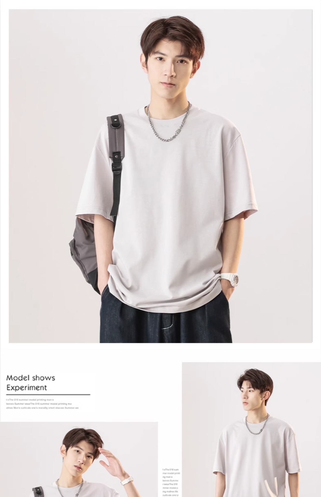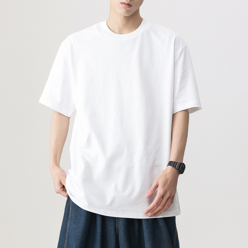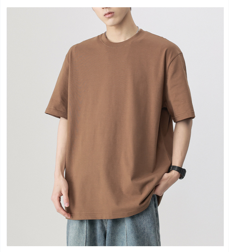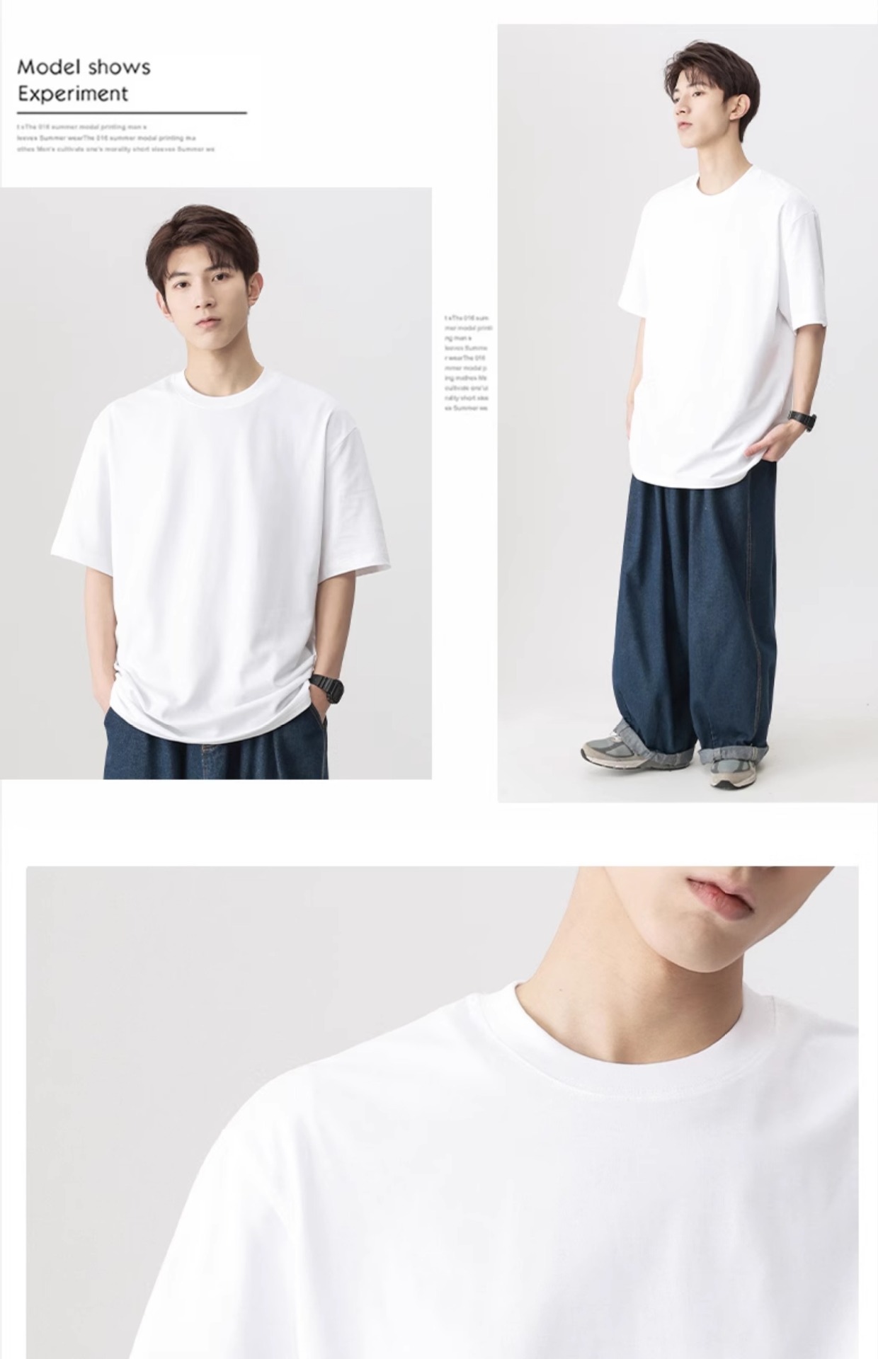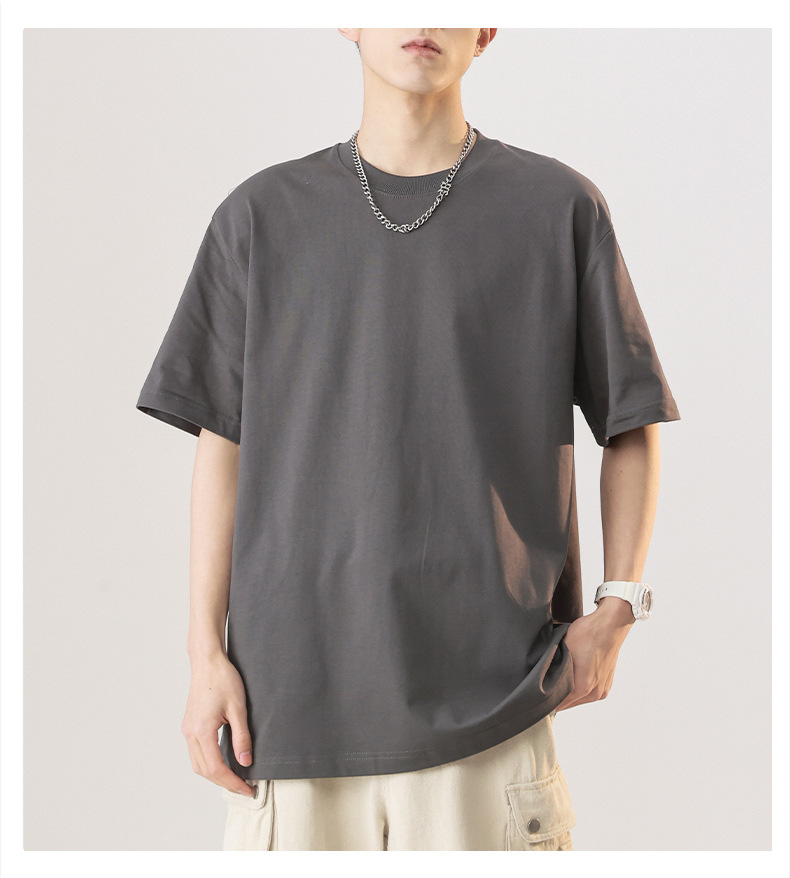 도매 반팔 티셔츠 남성 여름 얇은 느슨한 솔리드 컬러 캐주얼 탑 2025 새로운 230g 순수 코튼 바닥 셔츠스토어 가기